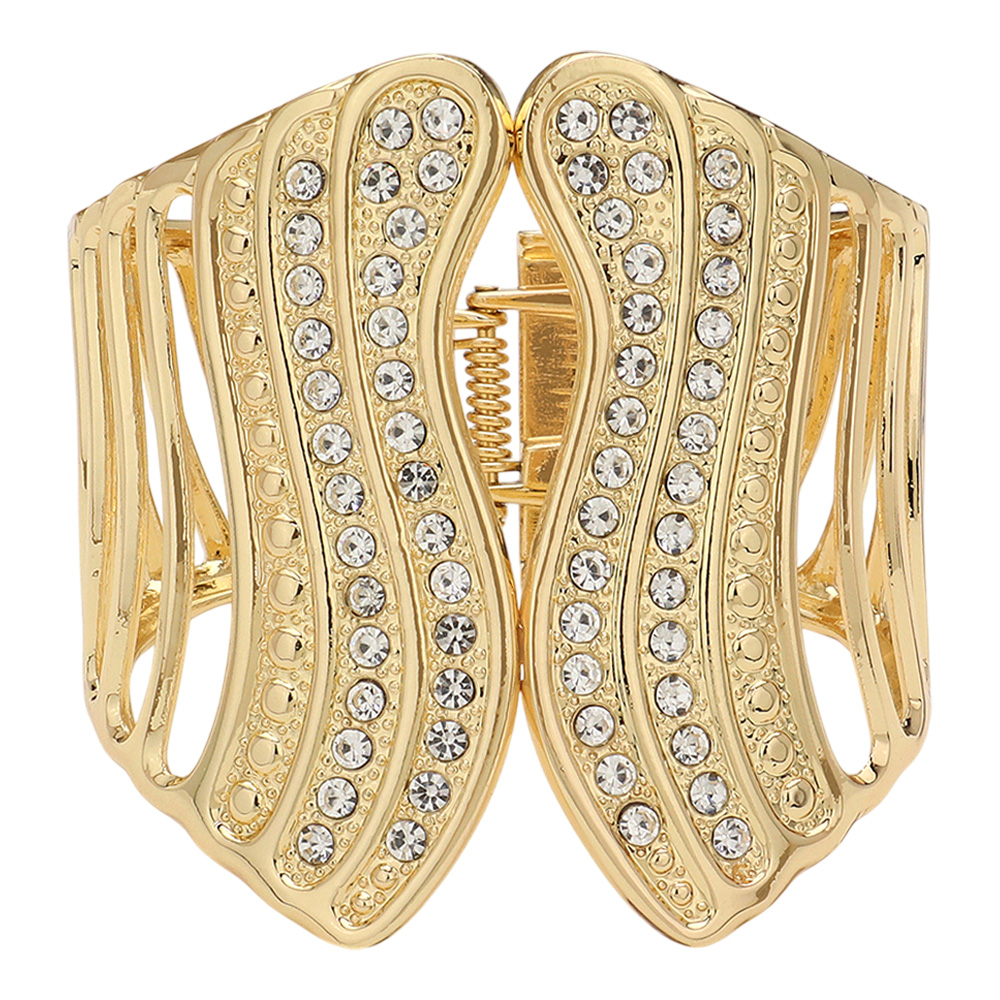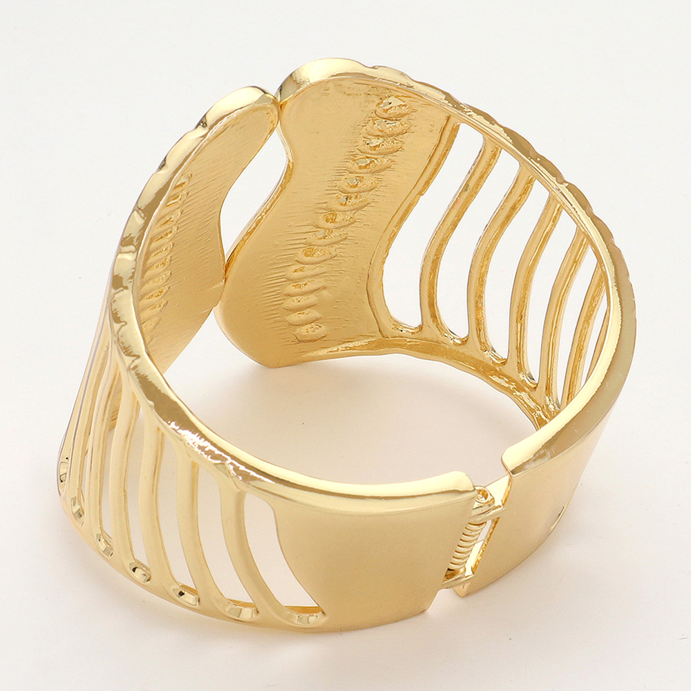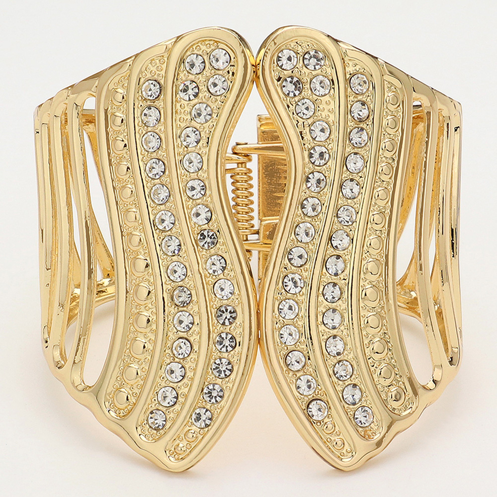 Abstract Stone Paved Wavy Hinged Bangle Bracelet