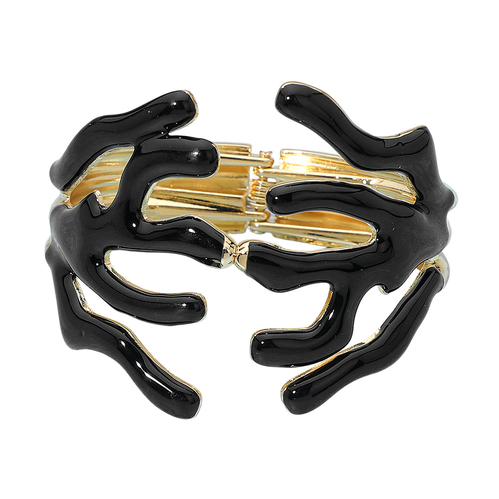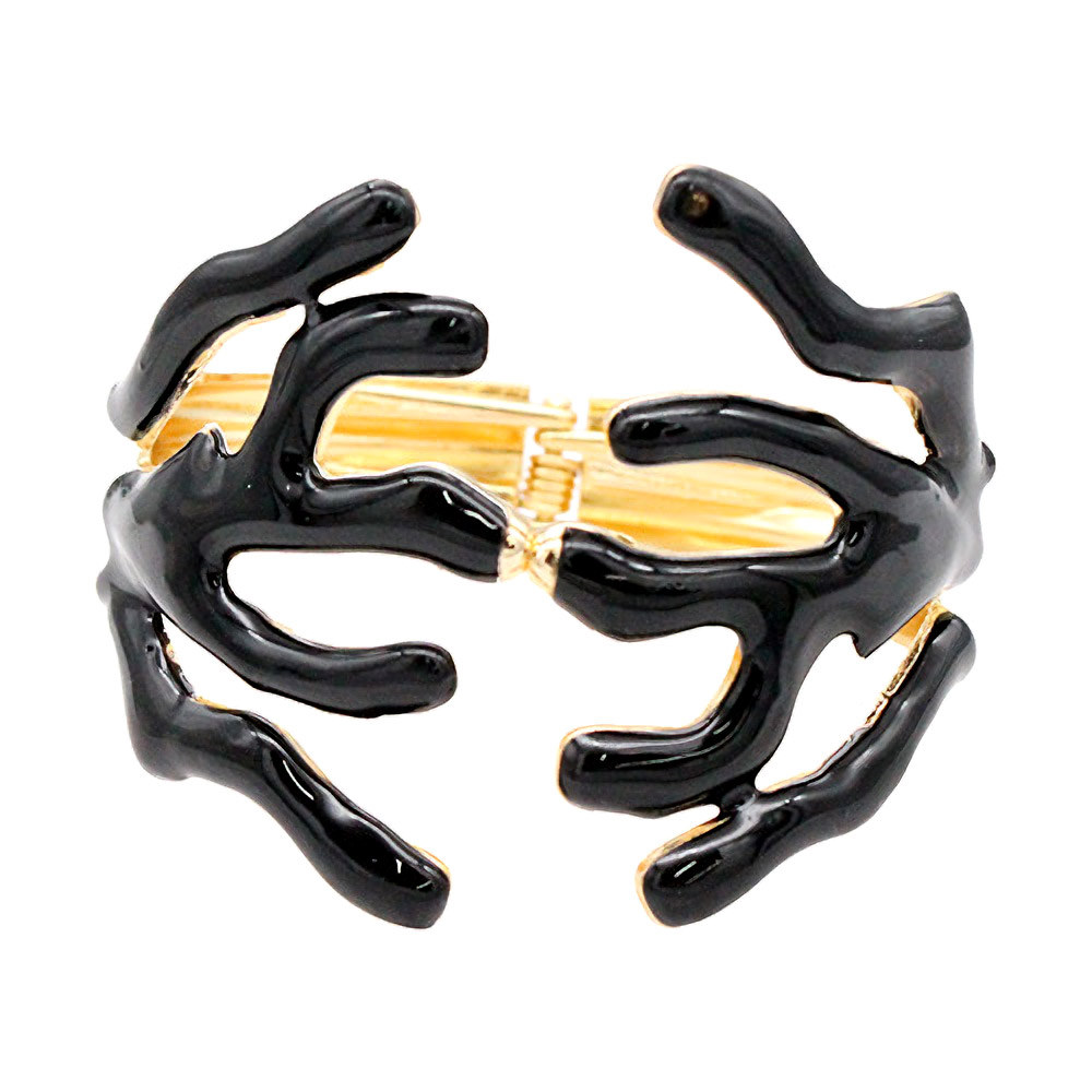 • Bold coral-inspired openwork bracelet featuring fluid branch-like shapes for a modern, sculptural look. Designed with a hinged closure for comfort and style, this statement piece adds a touch of artistic elegance to any outfit, perfect for both casual and evening wear.