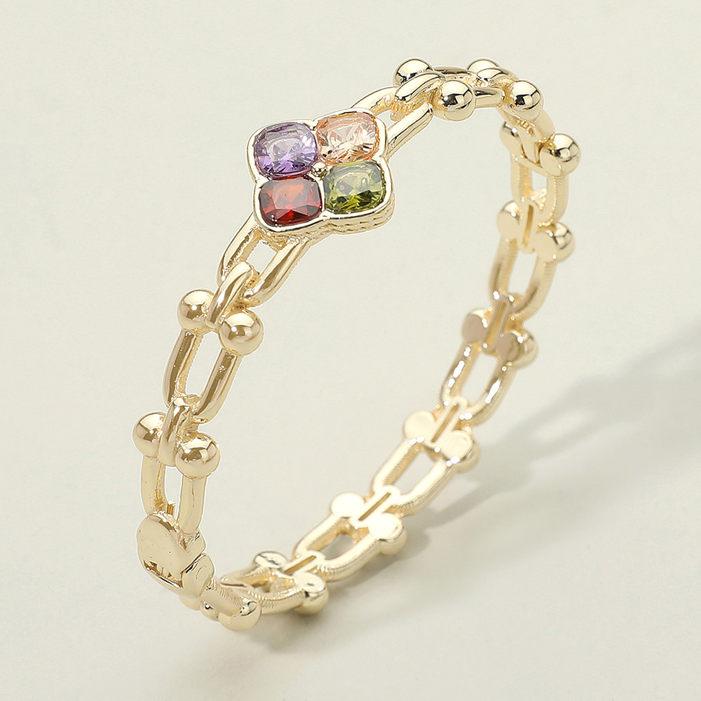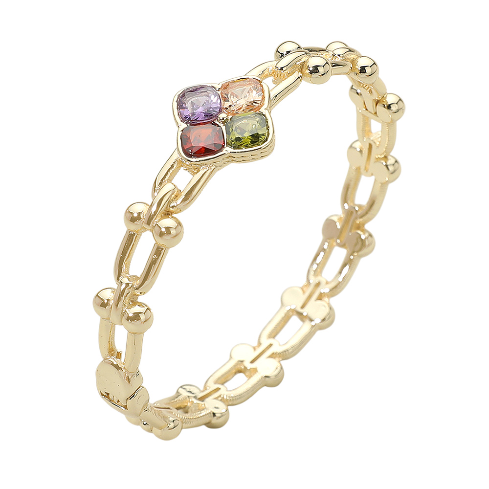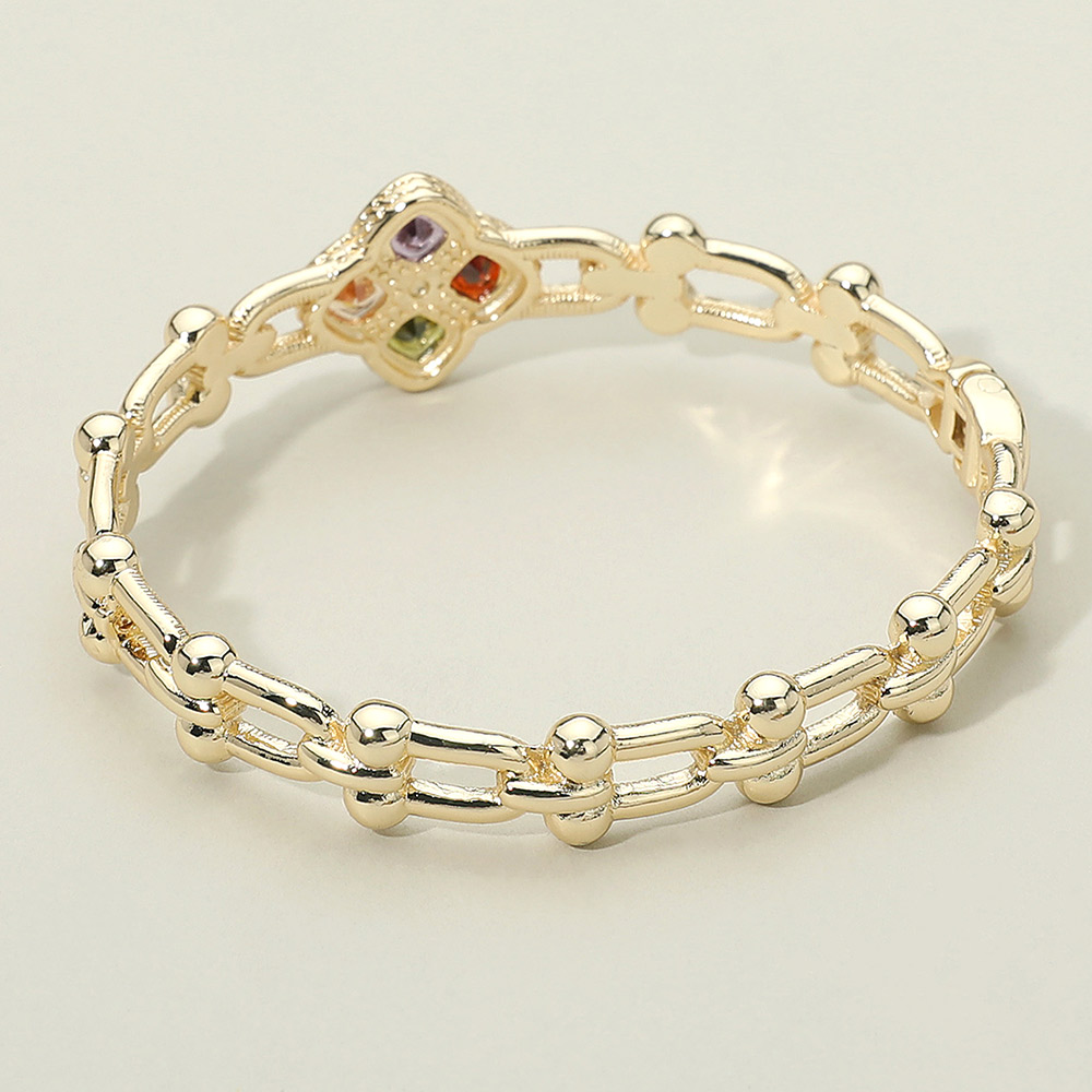 Colorful CZ Flower Stone Accent Industrial Link Hinged Bangle Bracelet