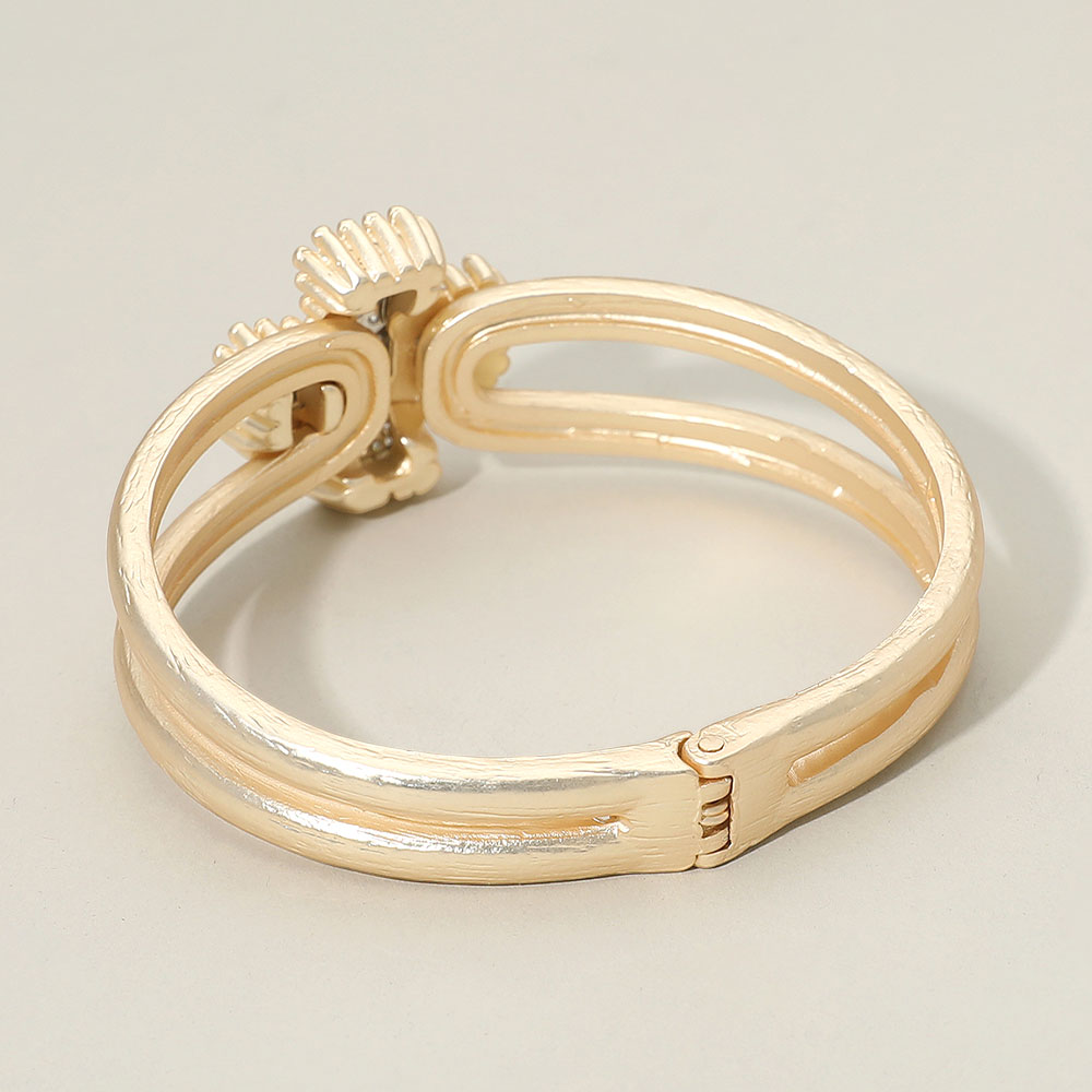• Chic cross hinge bracelet featuring a double band and shimmering stone accents, designed for a refined statement look. Perfect as a standout fashion accessory for dressing up casual outfits or adding polish to special occasion styles.