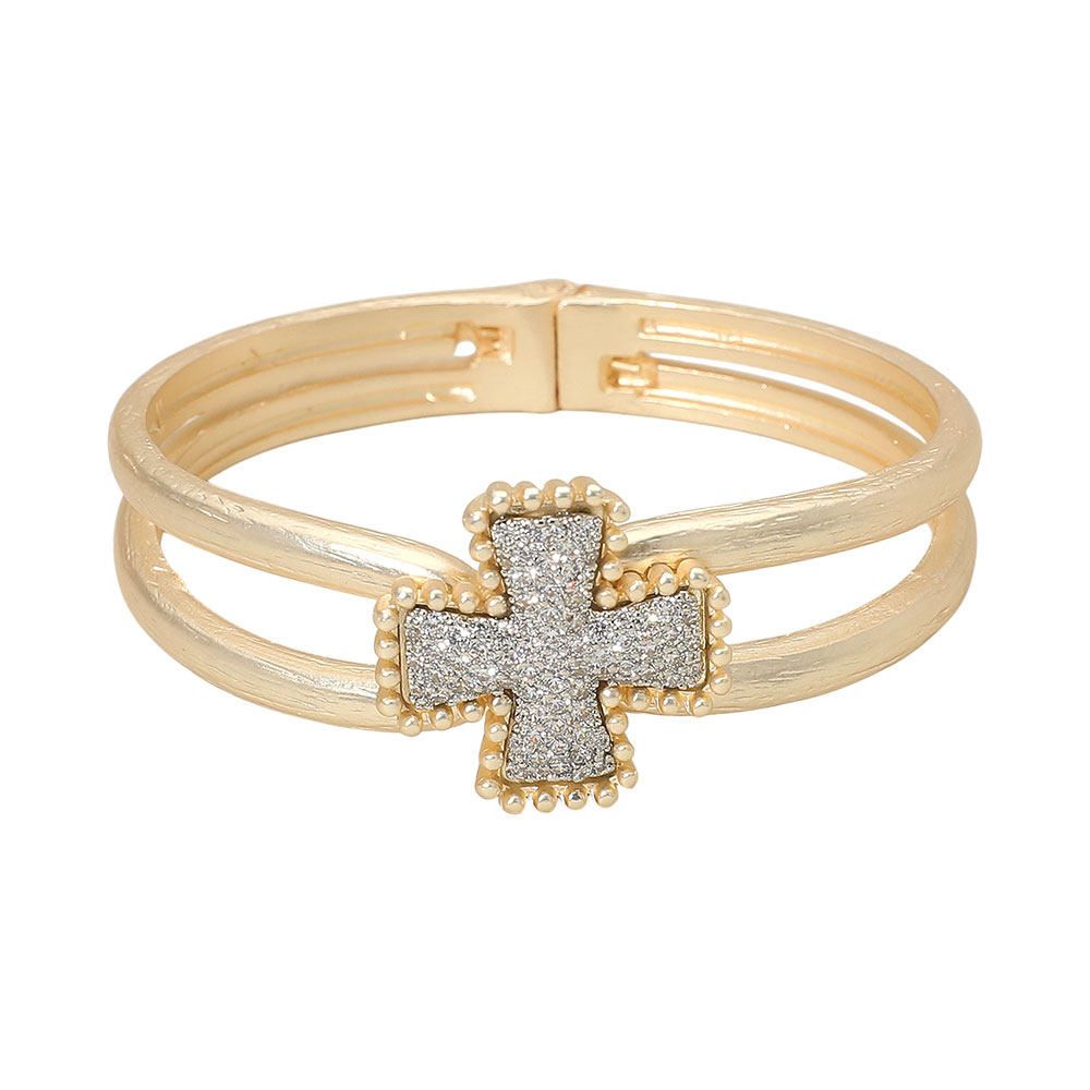 CZ Stone Paved Bubble Rim Cross Accent Hinged Bangle Bracelet CZ Stone Paved Bubble Rim Cross Accent Hinged Bangle Bracelet CZ Stone Paved Bubble Rim Cross Accent Hinged Bangle Bracelet