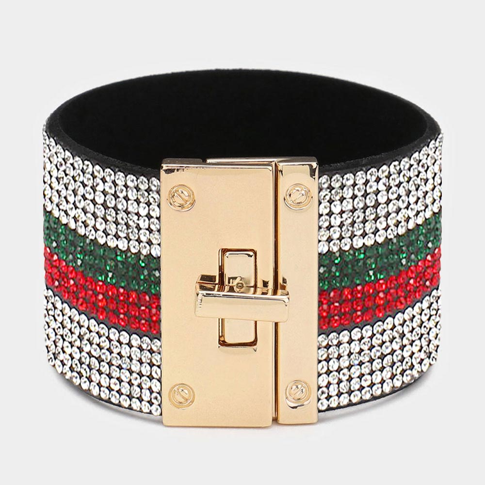 Embellished Rhinestone Wide Turn Lock Bracelet