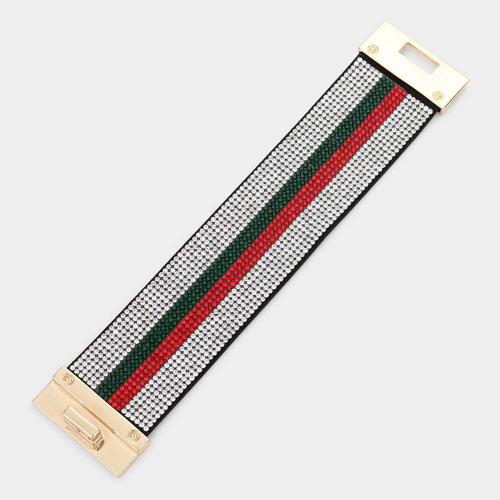 Embellished Color Block Rhinestone Wide Turn Lock Bracelet