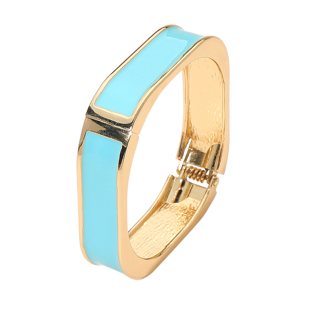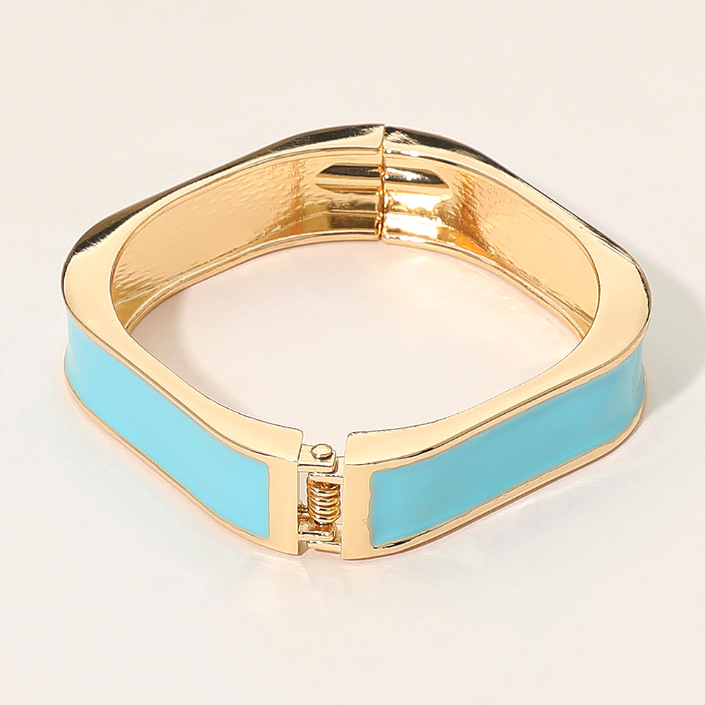 • Modern rectangular hinged bangle bracelet featuring a sleek enamel surface and polished finish. Its clean geometric shape adds a minimalist yet chic touch to any outfit. Perfect for elevating both casual and formal styles with refined sophistication and timeless appeal.