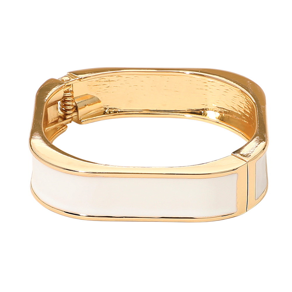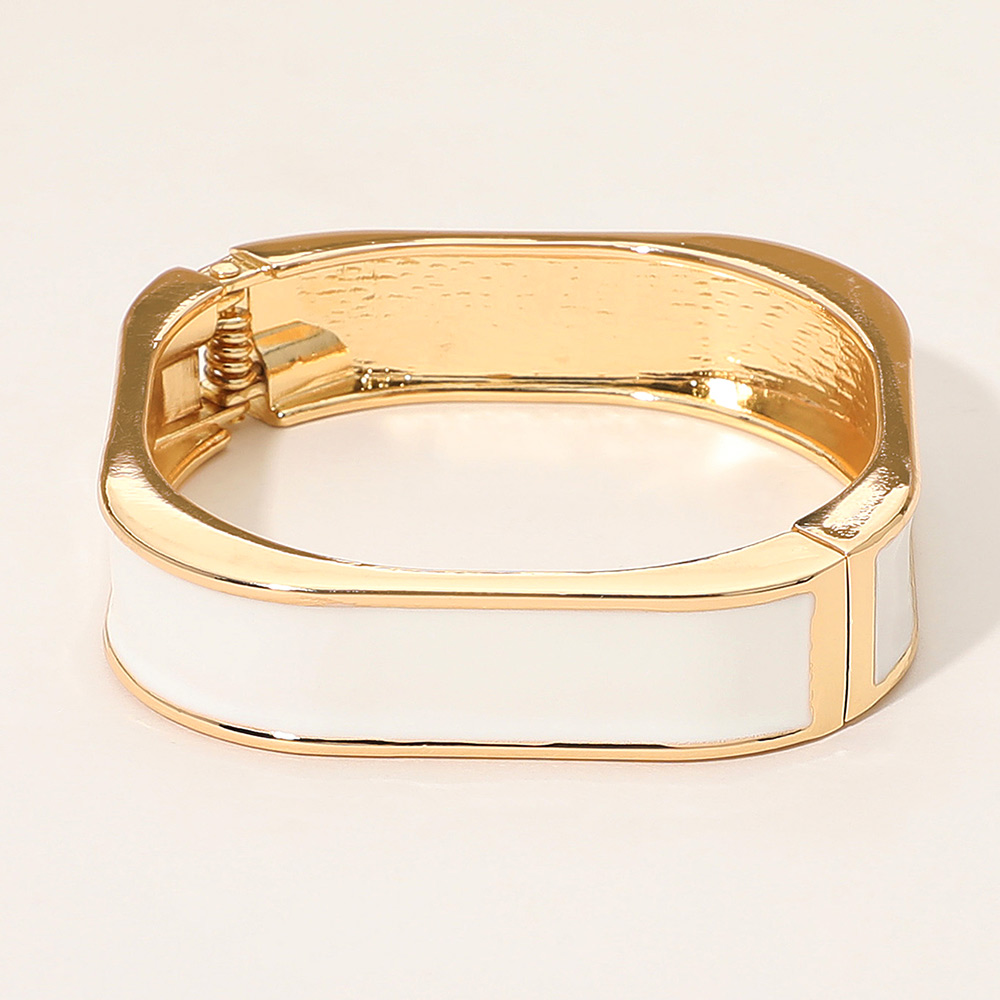 Details • Size : 0.6" H, 2.25" D • Hinged Closure • Modern rectangular hinged bangle bracelet featuring a sleek enamel surface and polished finish. Its clean geometric shape adds a minimalist yet chic touch to any outfit. Perfect for elevating both casual and formal styles with refined sophistication and timeless appeal. • Lead and Nickel Compliant