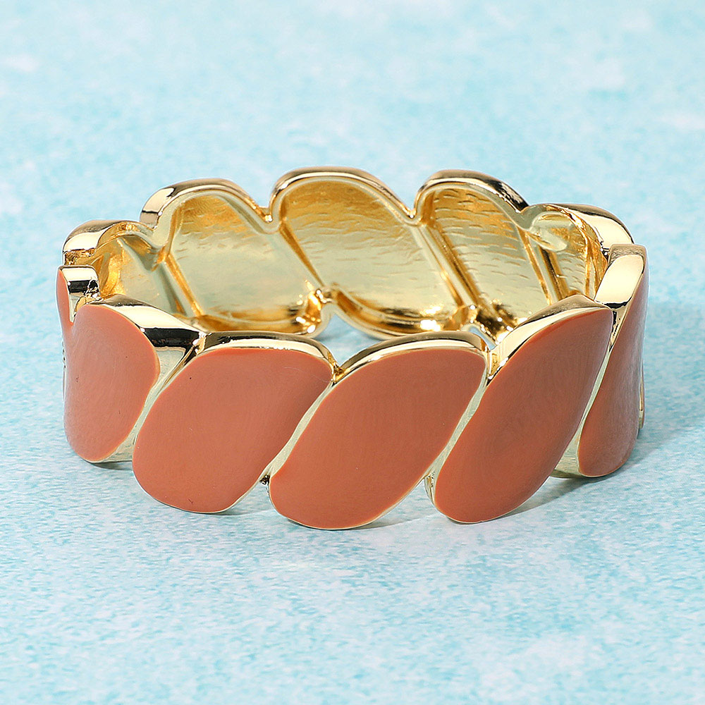 • Elegant statement bracelet featuring alternating marquise-shaped links with a polished finish. Designed with a modern geometric pattern and secure hinge closure, this bold accessory adds sophistication and style to both casual and formal looks.