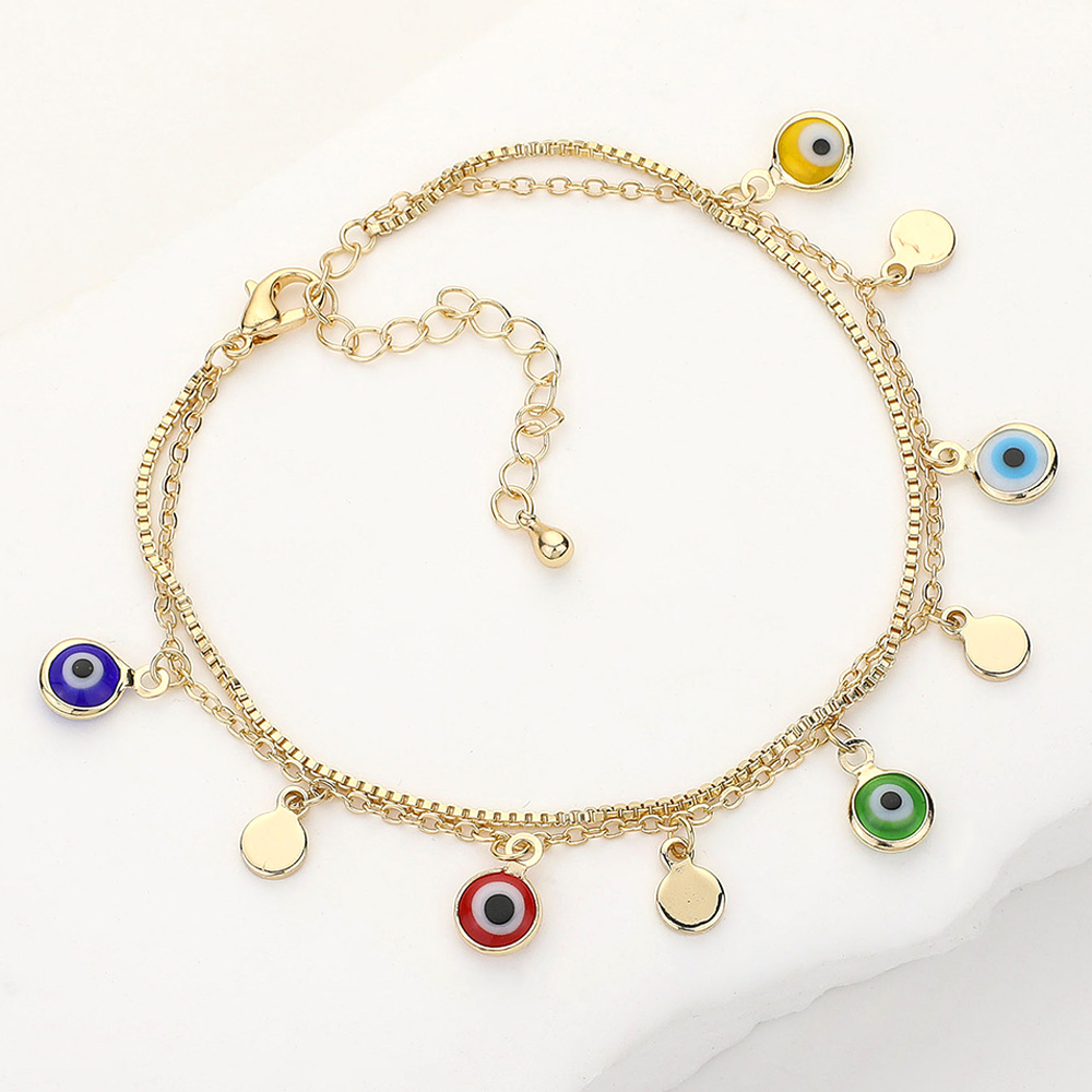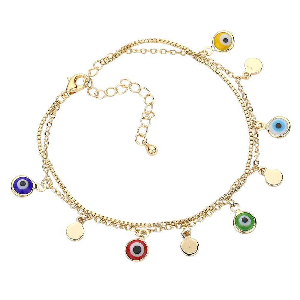 Evil Eye Metal Disc Charm Station Double Layered Bracelet