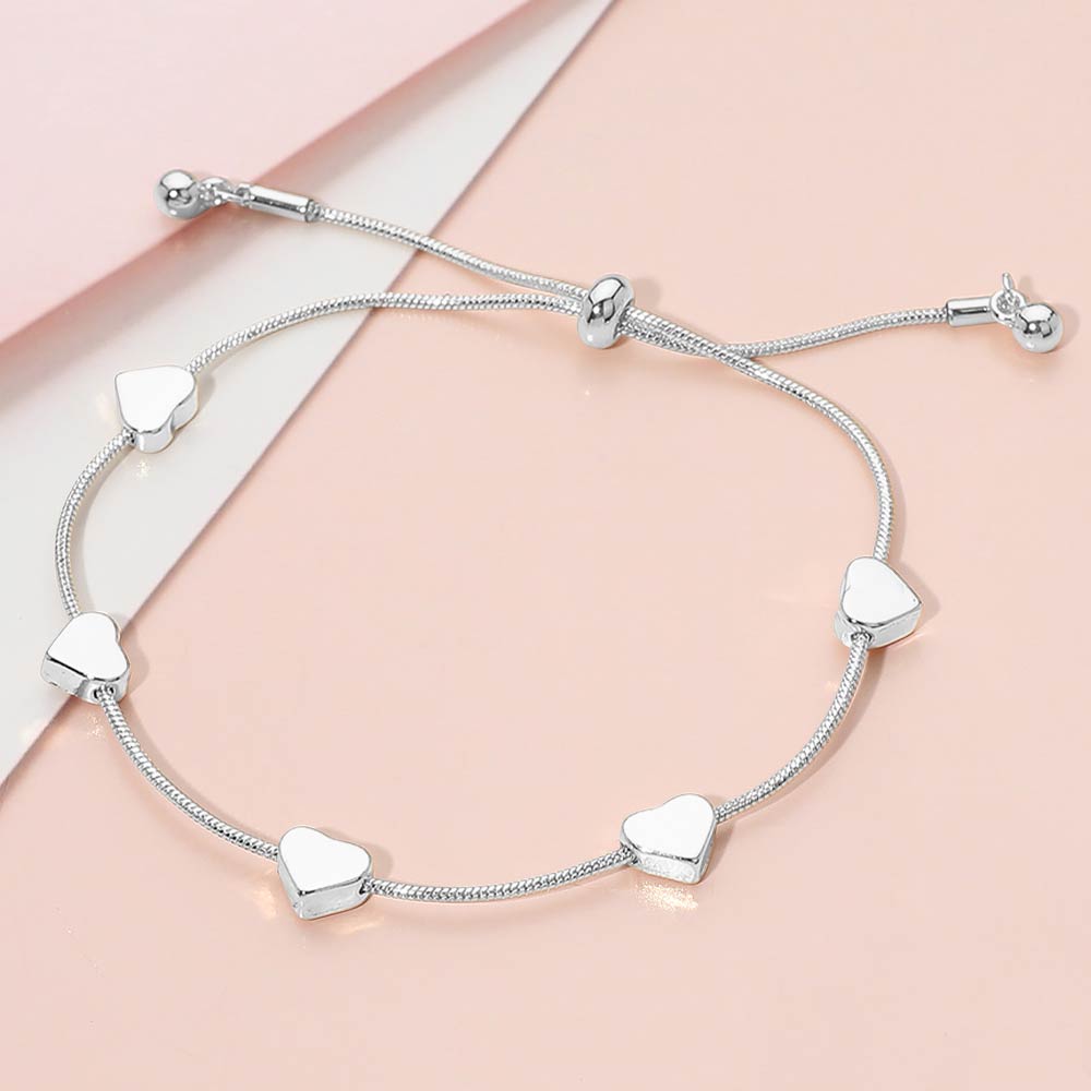 Flat Heart Charm Station Adjustable Cinch Pull Tie Bracelet Flat Heart Charm Station Adjustable Cinch Pull Tie Bracelet Flat Heart Charm Station Adjustable Cinch Pull Tie Bracelet