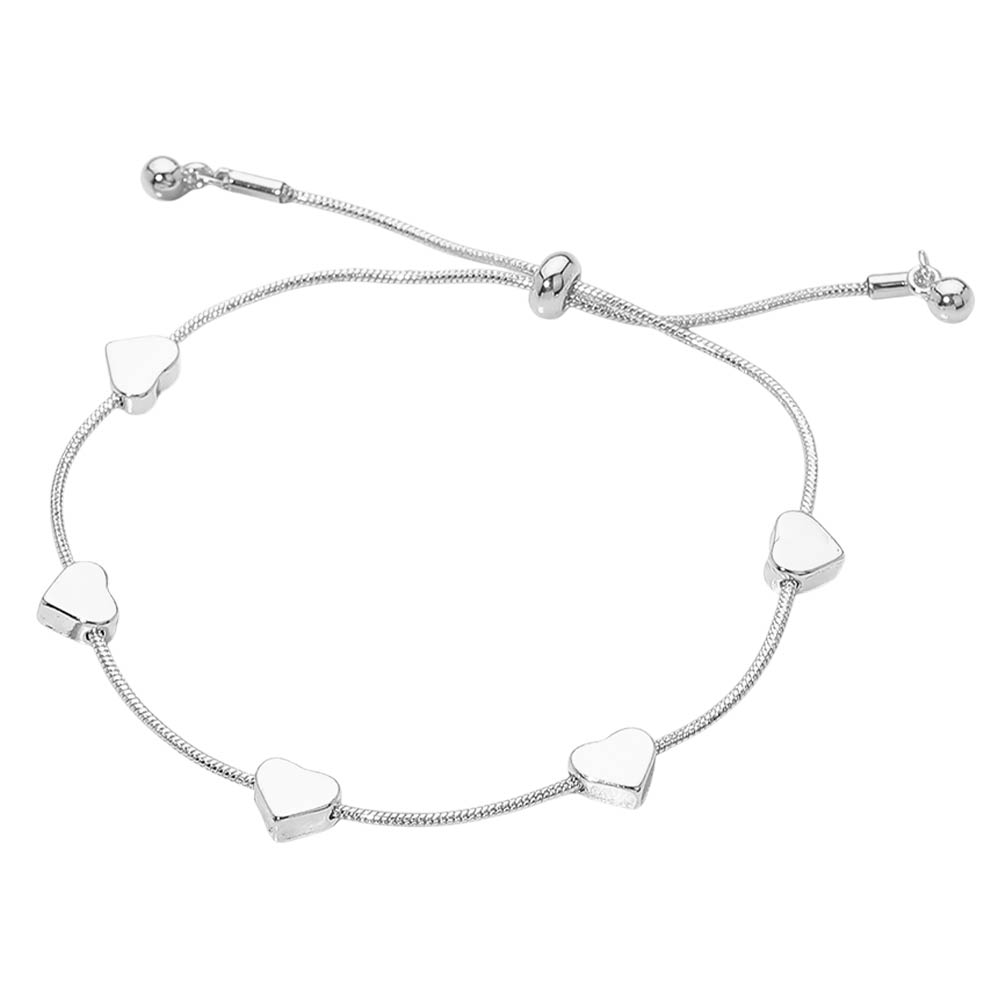 • Minimal adjustable bracelet featuring smooth heart station accents spaced along a sleek slider chain. Designed for easy sizing and all-day comfort, this bracelet delivers a clean, romantic look that works for everyday wear, layering, or gifting. A versatile style ideal for boutiques, curated collections, and modern jewelry displays.