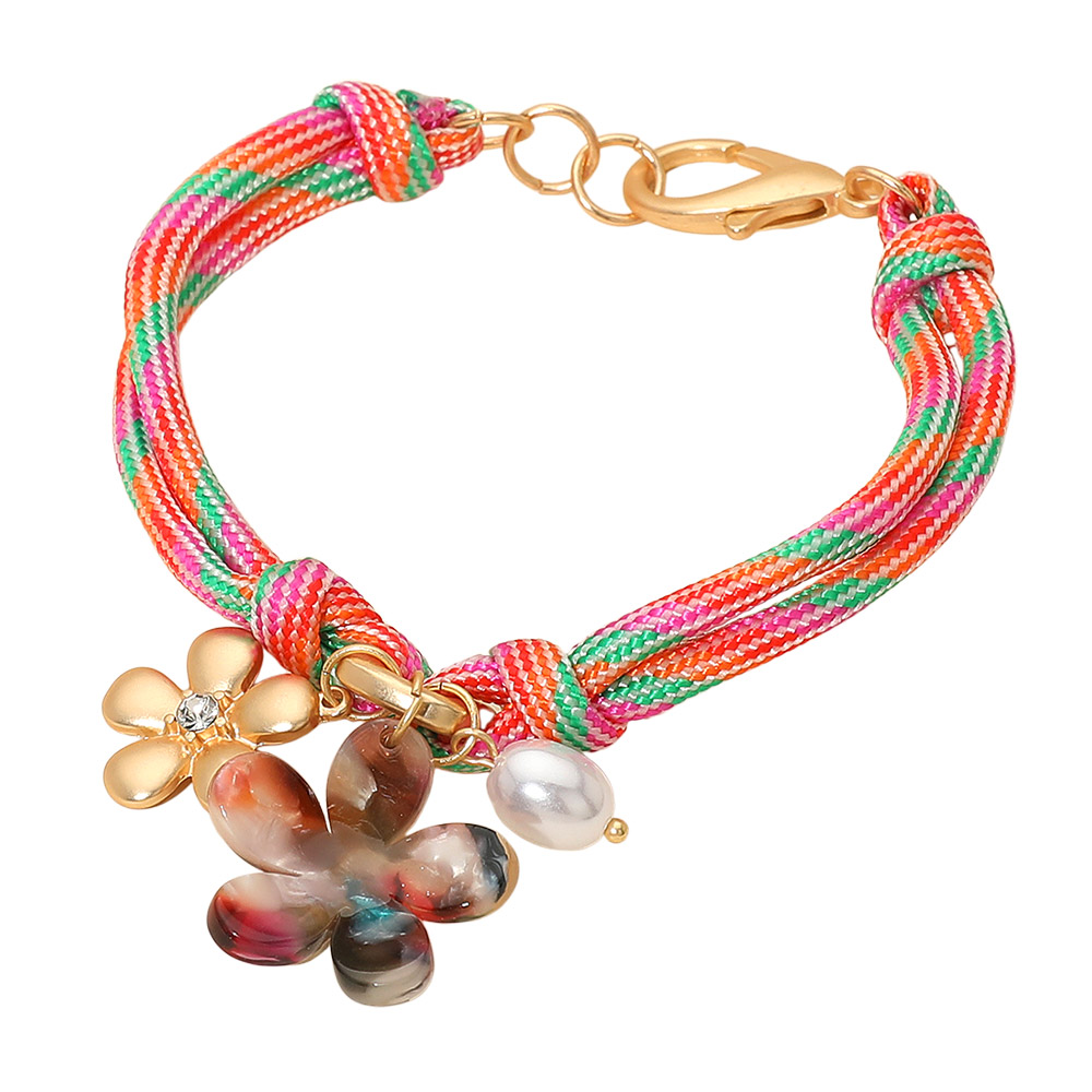Details • Size : 0.4" H, 7.5" + 0.75" L • Charm Size : 1.5" L • Lobster Clasp Closure • This floral charm rope bracelet adds a lively touch to any look, featuring a multitone band accented with eye-catching charms. Its playful mix of textures creates a standout accessory that layers effortlessly and brings a fresh, expressive style to everyday outfits. • Lead and Nickel Compliant