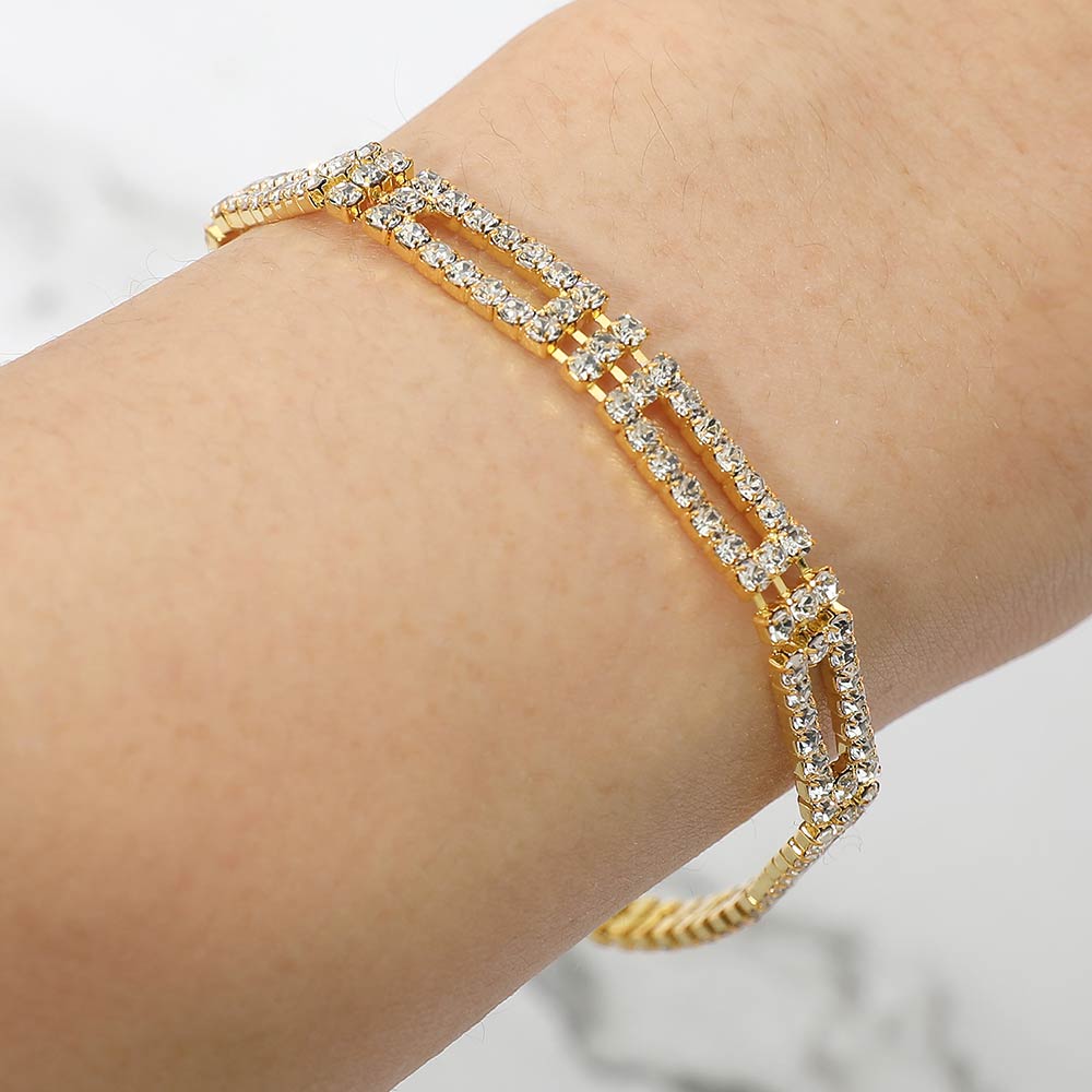 Rhinestone Embellished Rectangle Accented Bracelet