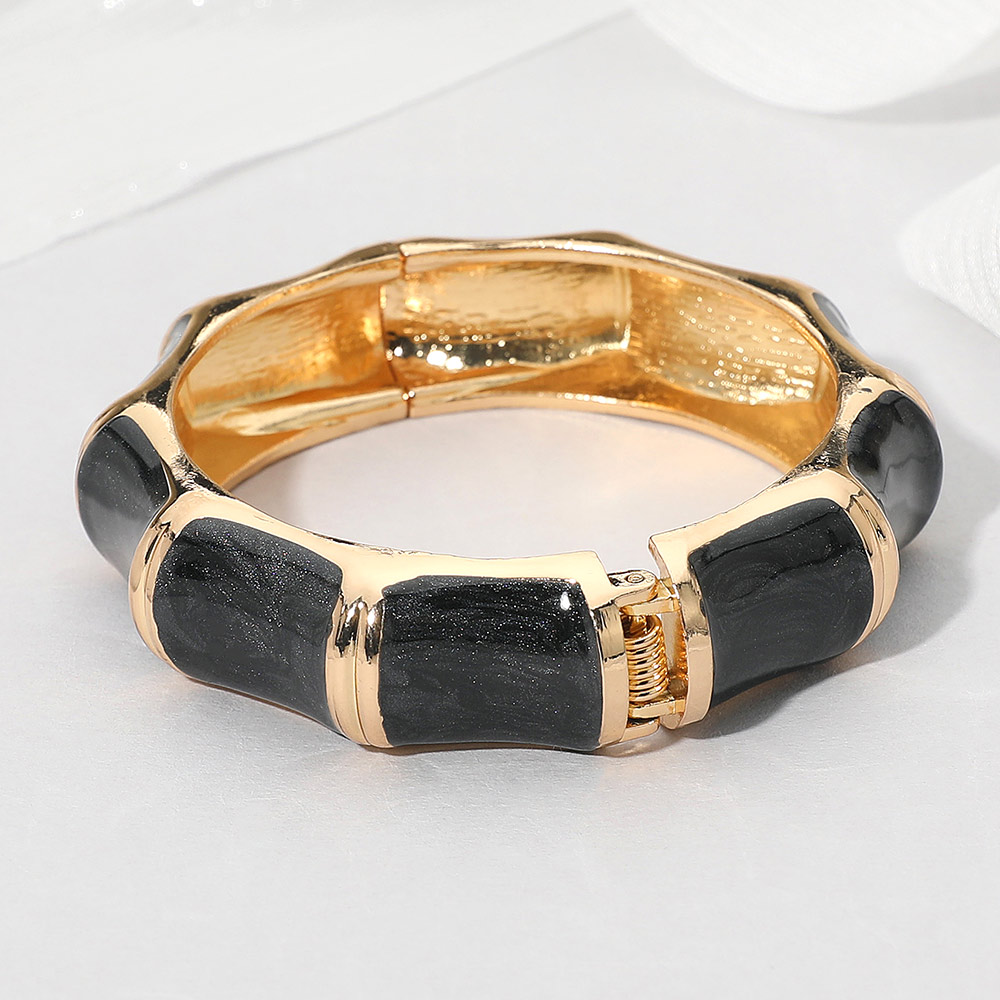 • Stylish enamel hinged bangle bracelet featuring a smooth wave-inspired bamboo shape with a glossy finish. The elegant segmented design adds a modern touch to any outfit, making it ideal for casual and dressy looks. Perfect accessory to elevate everyday or evening style.