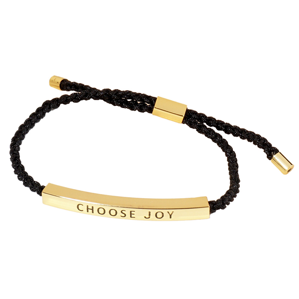 Gold Dipped CHOOSE JOY Message Bar Pointed Rope Adjustable Cinch Pull Tie Bracelet