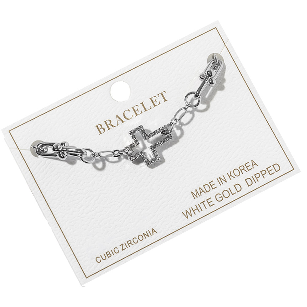 • Elegant link bracelet featuring a refined cross charm accented with cubic zirconia for subtle sparkle. Designed to elevate everyday outfits or complement special occasion looks, this bracelet is ideal for layering, gifting, and curated boutique jewelry collections.