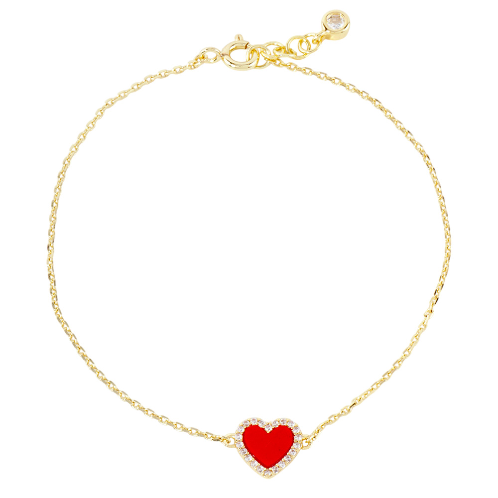 Gold Dipped CZ Stone Paved Rim Heart Charm Pointed Bracelet
