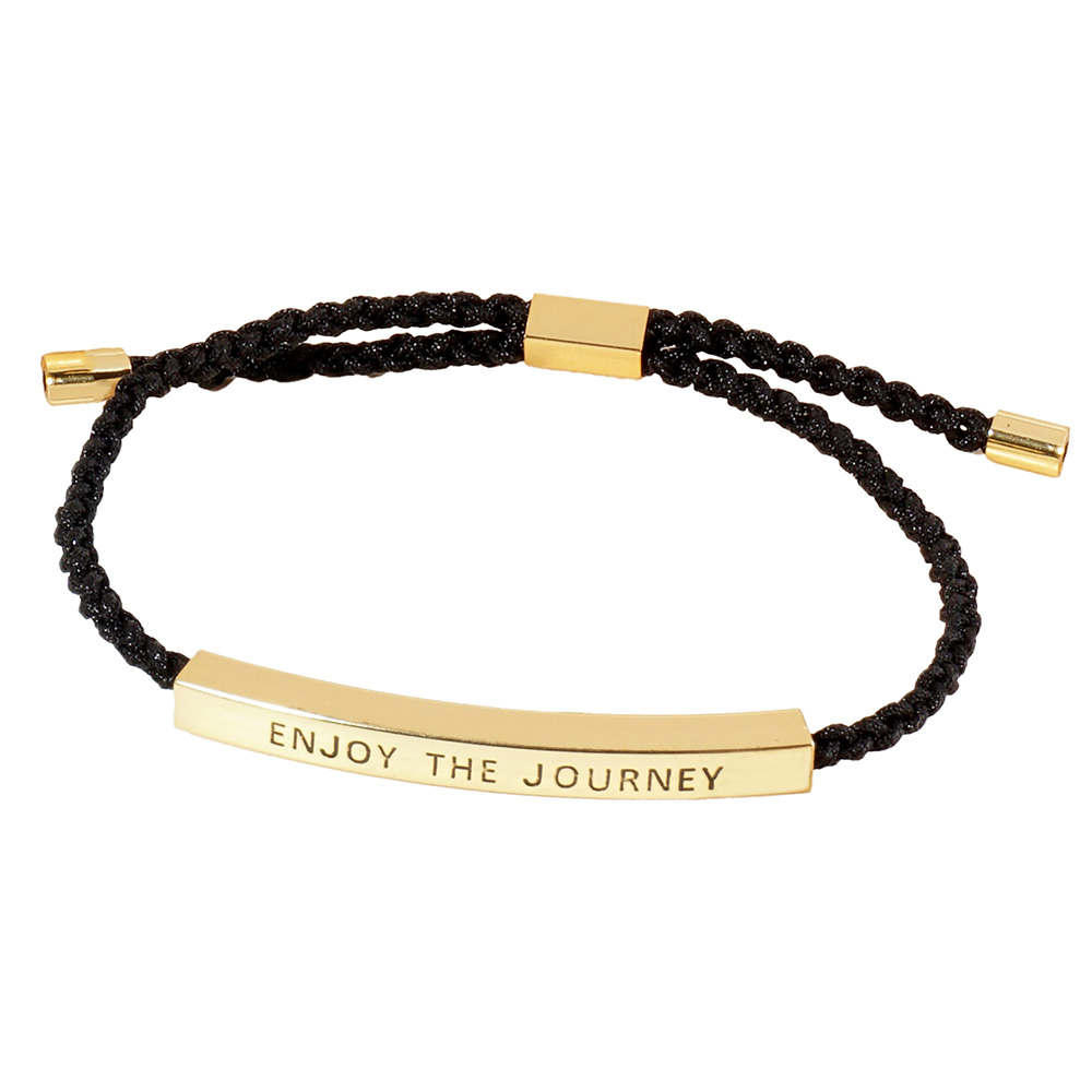 White Gold Dipped ENJOY THE JOURNEY Message Bar Pointed Rope Adjustable Cinch Pull Tie Bracelet