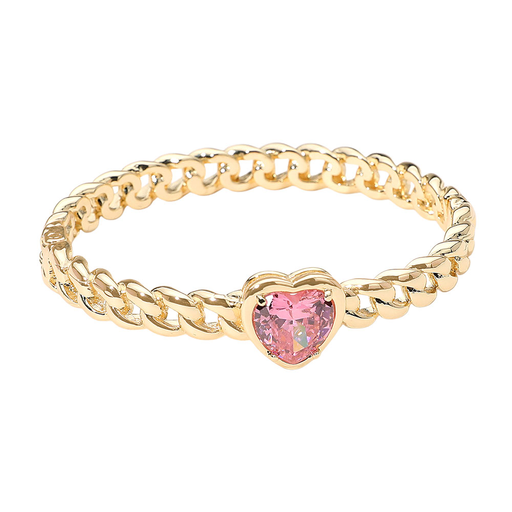 Heart CZ Stone Accent Hinged Chain-Link Bangle Bracelet Heart CZ Stone Accent Hinged Chain-Link Bangle Bracelet