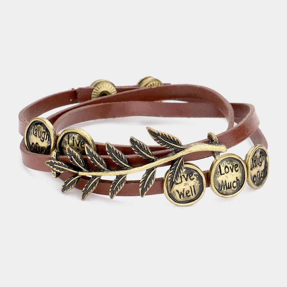 Message Disc Cluster Laurel Faux Leather Wrap Bracelet