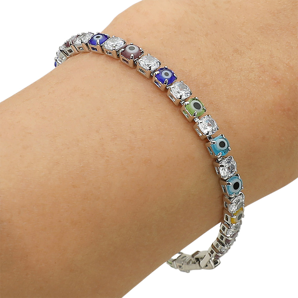 Multicolor Evil Eye CZ Stone Cluster Link Bracelet