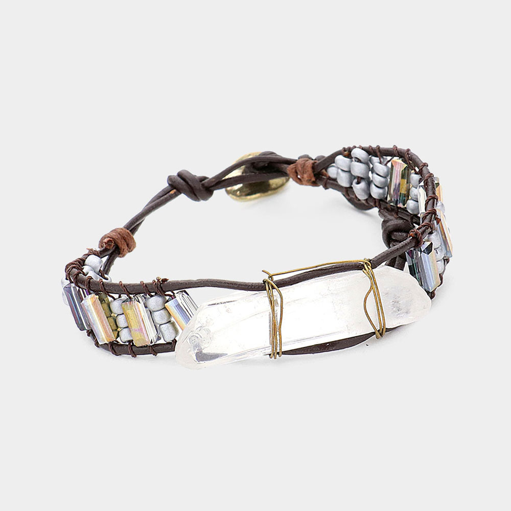 5PCS - Metal Ball Pearl Beaded Stretch Multi Layered Bracelets