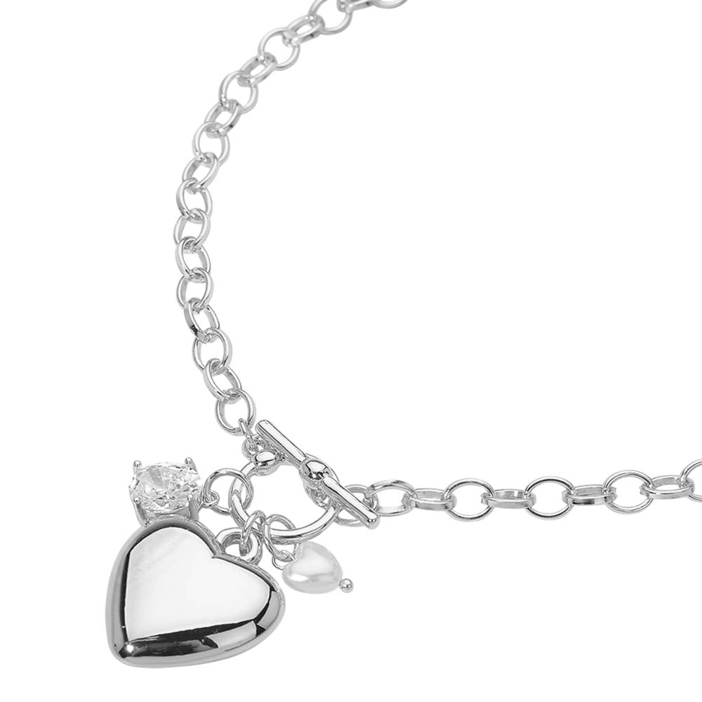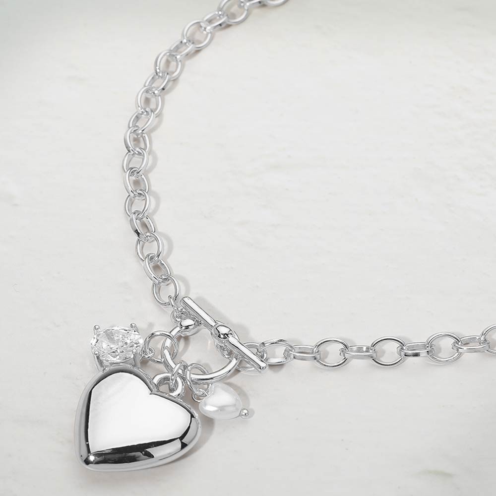 Puffy Metal Pearl Heart Stone Charm Toggle Pendant Necklace