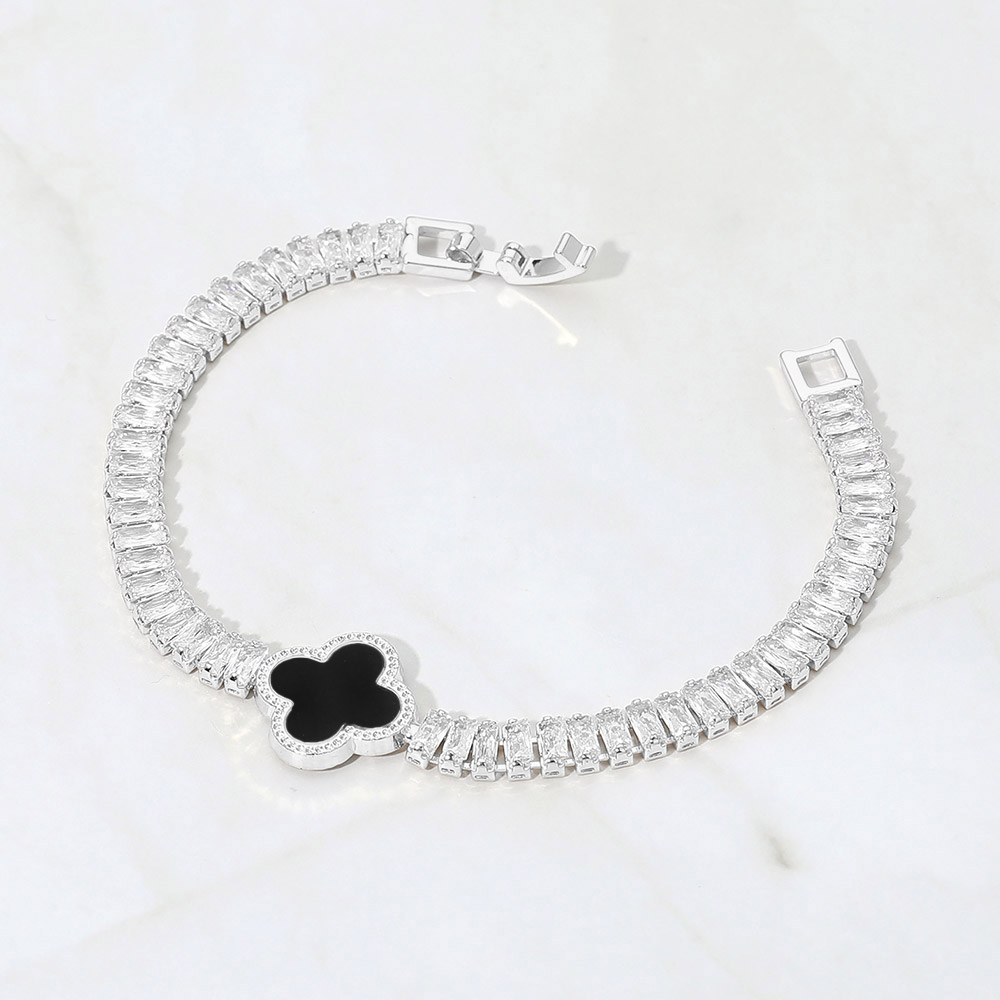 • Refined tennis style bracelet featuring a sleek quatrefoil accent that adds symbolic charm and elevated detail. Designed with a secure clasp for a polished fit, this piece is ideal for everyday elegance, special occasions, boutique assortments, and giftable jewelry collections.
