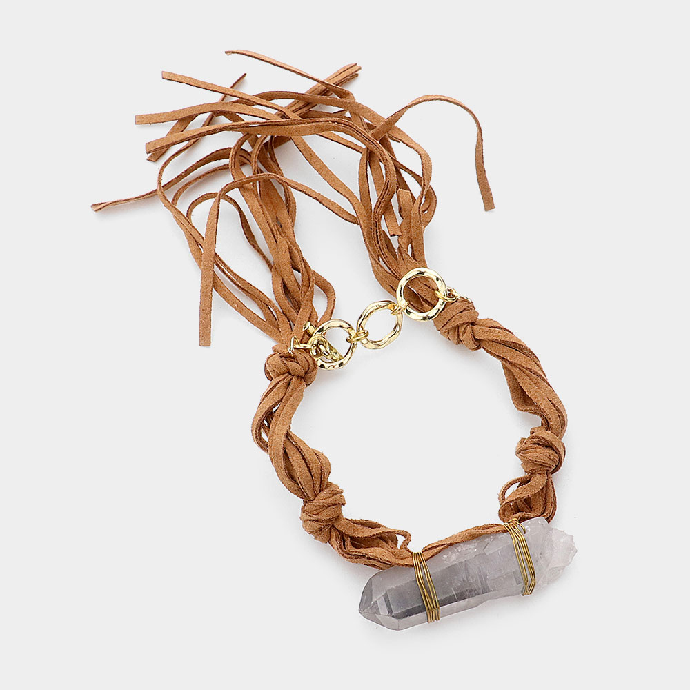 Dream Catcher Charm Semi Precious Stone Faux Suede Adjustable Pull Tie Bracelet
