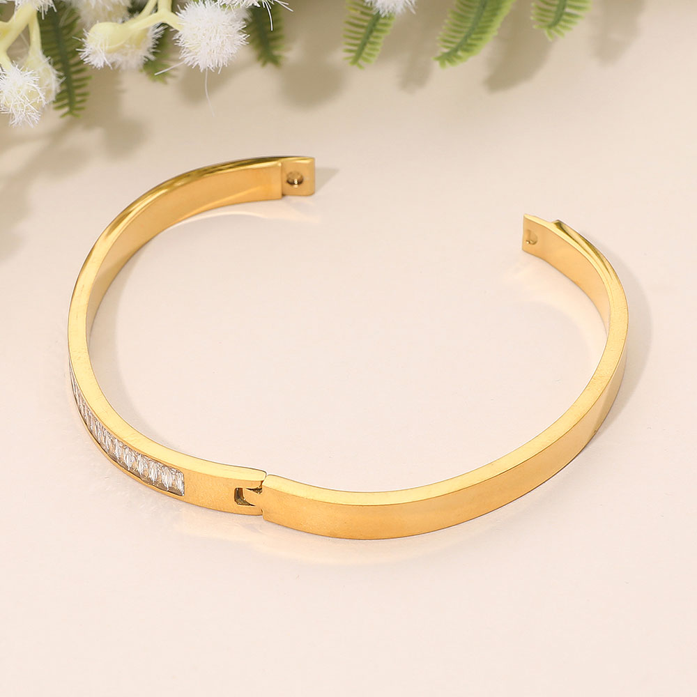 SECRET BOX_Stainless Steel Rhinestone Insert Hinged Bangle Bracelet