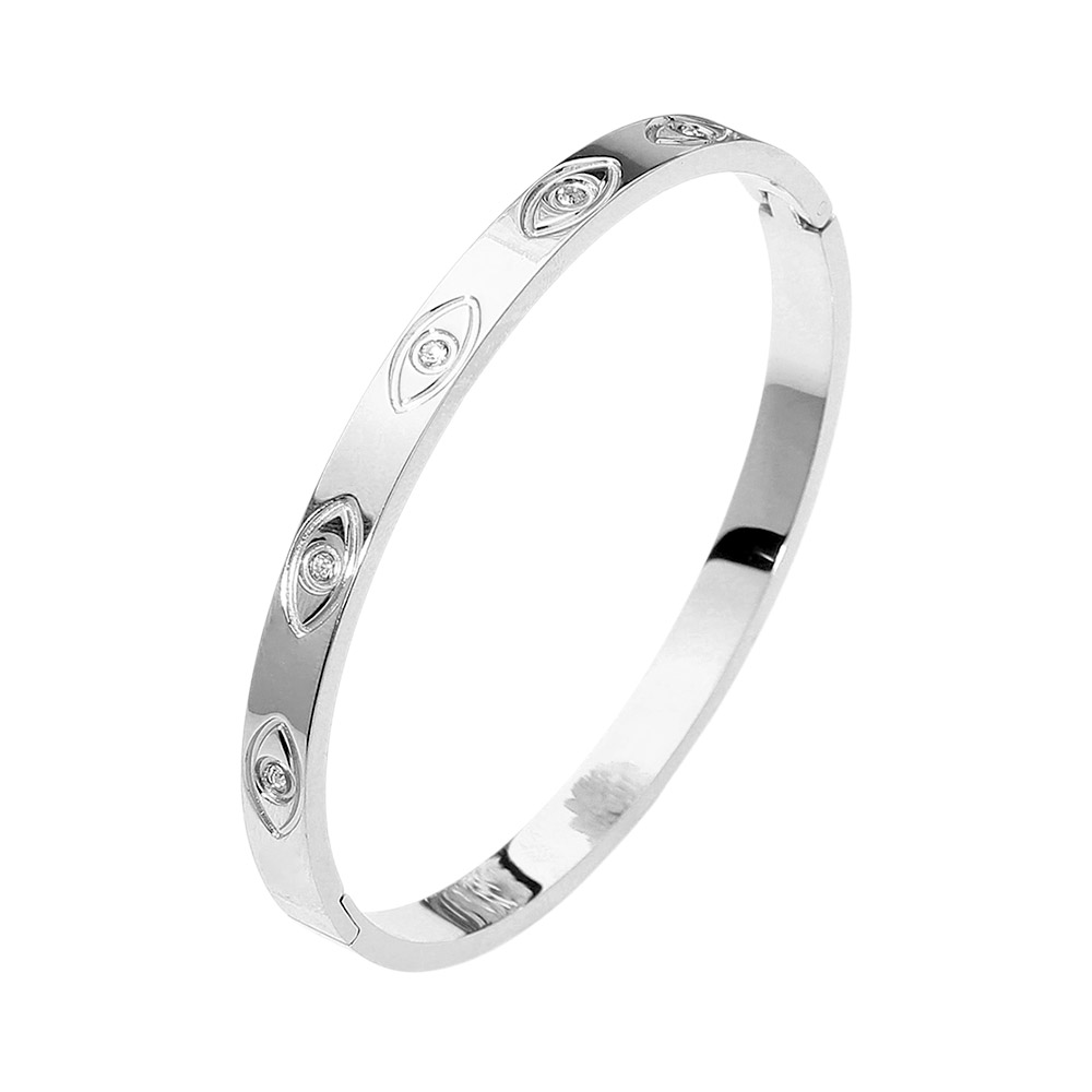 Rhodium Plated CZ Evil Eye Pointed Bangle Bracelet