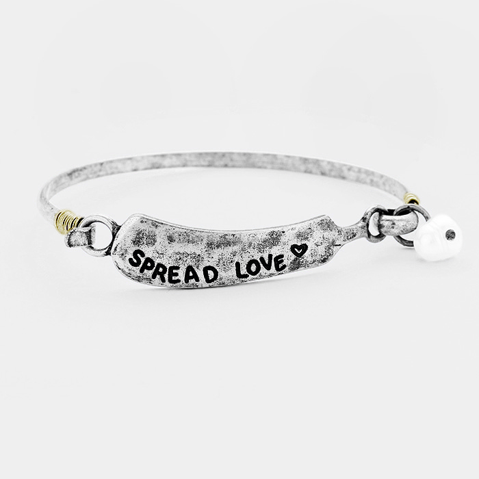 "Spread Love" Pearl Burnished Metal Hook Bracelet