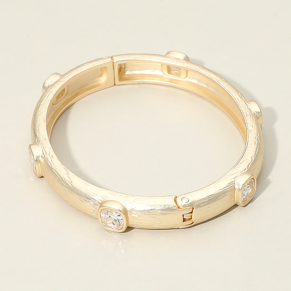 Details • Size : 0.3" H, 2.3" D • Hinged Closure • This Textured Bangle Bracelet exudes timeless charm with its refined finish and brilliant square cz accents. Designed for effortless sophistication, it adds a hint of sparkle to any look — perfect for elevating both everyday outfits and elegant evening ensembles. • CZ Cubic Zirconia