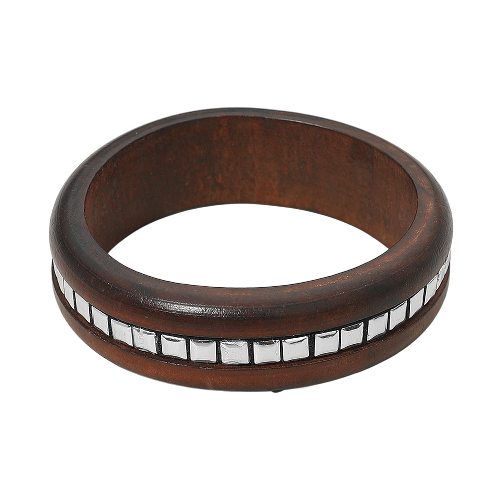 Square Metal Stud Line Center Wooden Bangle Bracelet