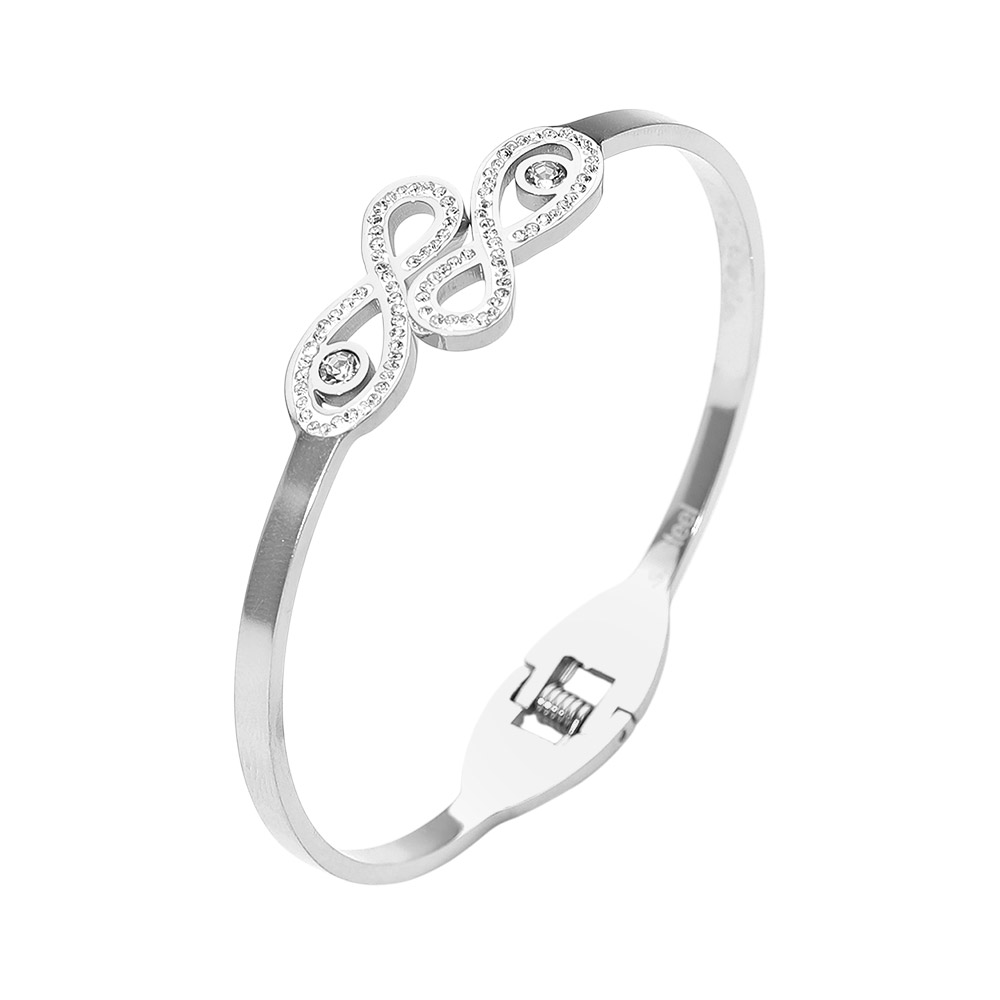 Stainless Steel CZ Stone Paved Infinity Loop Accent Hinged Bangle Bracelet Stainless Steel CZ Stone Paved Infinity Loop Accent Hinged Bangle Bracelet Stainless Steel CZ Stone Paved Infinity Loop Accent Hinged Bangle Bracelet