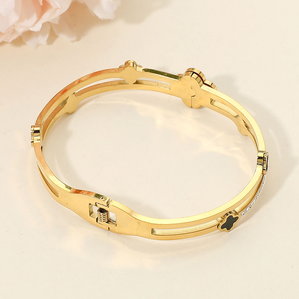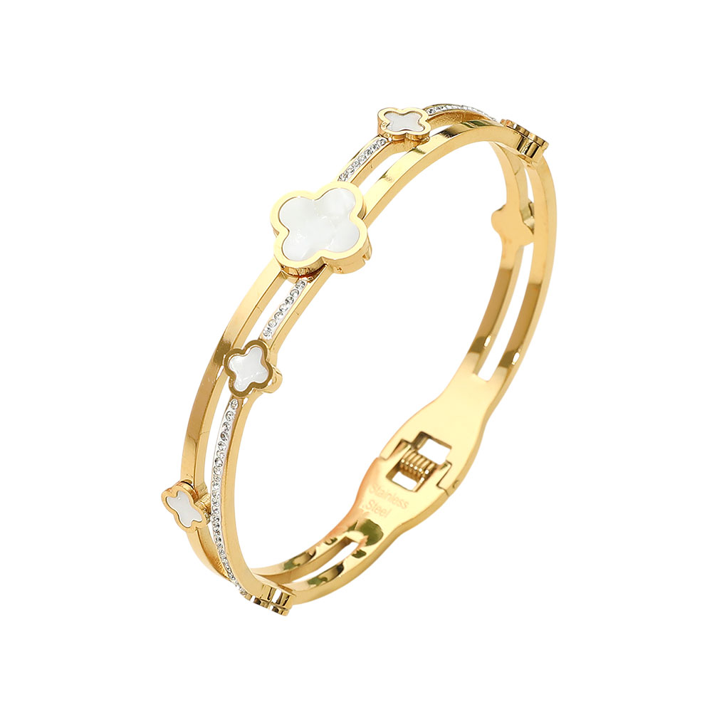 Stainless Steel Mother of Pearl Quatrefoil CZ Stone Split Hinged Bangle Bracelet Stainless Steel Mother of Pearl Quatrefoil CZ Stone Split Hinged Bangle Bracelet Stainless Steel Mother of Pearl Quatrefoil CZ Stone Split Hinged Bangle Bracelet