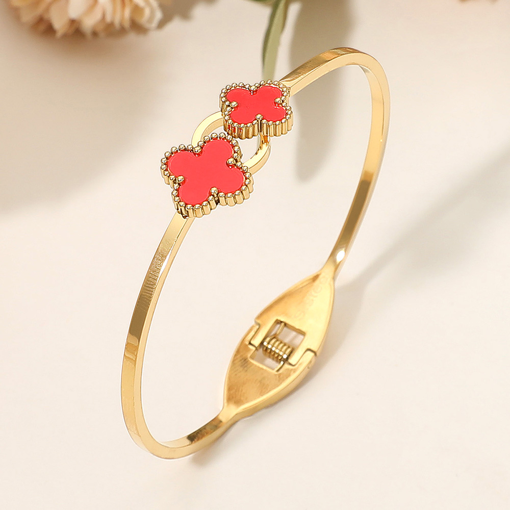 Details • Size : 0.6" H, 2.4" D • Hinged Closure • Bring elegance to your wrist with this quatrefoil charm hinged bangle bracelet. Designed with sleek detailing and a secure clasp, it’s perfect for both everyday wear and special occasions. A timeless accessory that adds refined charm and makes a thoughtful gift choice. • Stainless Steel