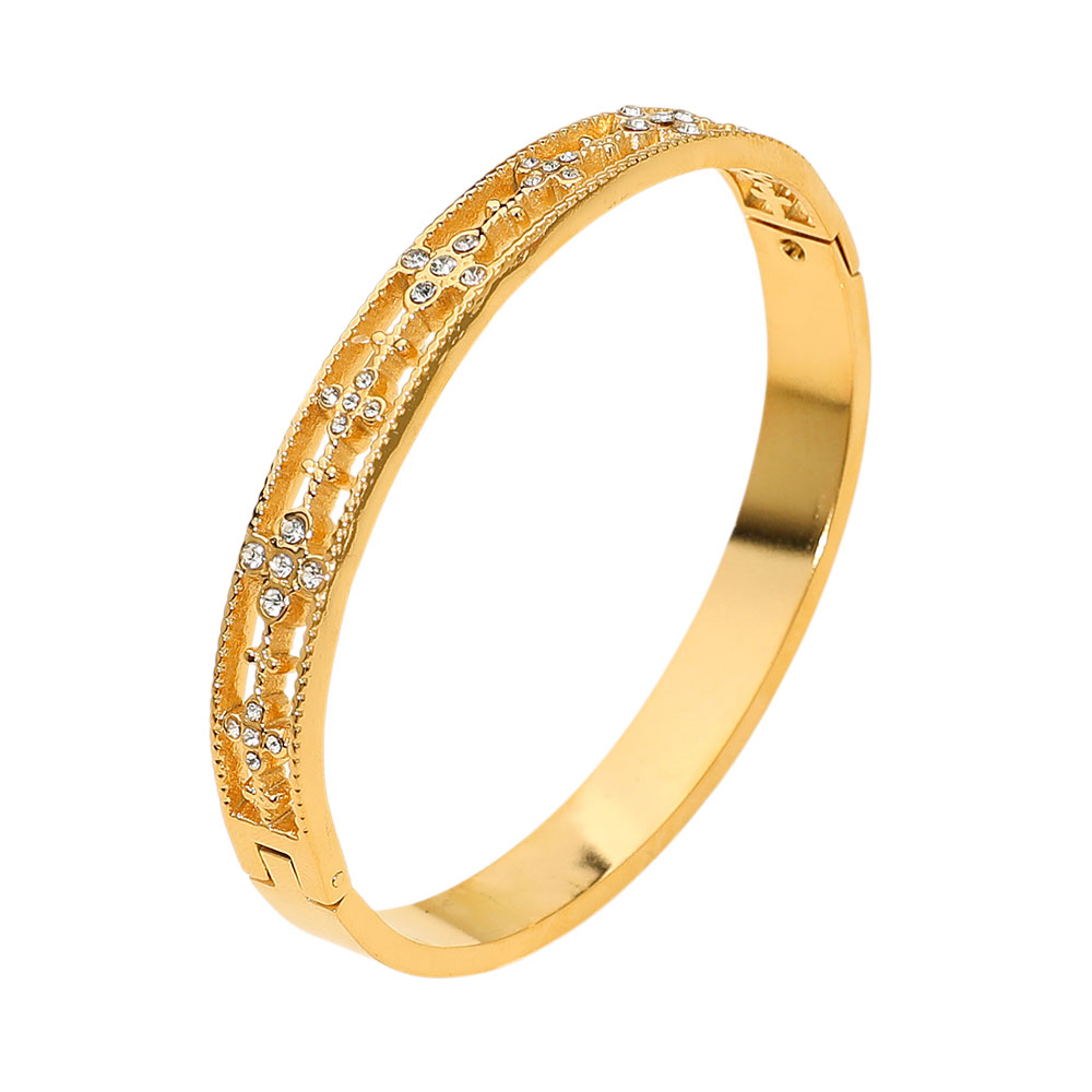 • Refined slim hinged bangle detailed with delicate pavĂ©-style crystal accents for subtle shine. Lightweight and easy to wear, this elegant bracelet layers beautifully or stands alone as a timeless finishing touch for everyday looks and special occasions.