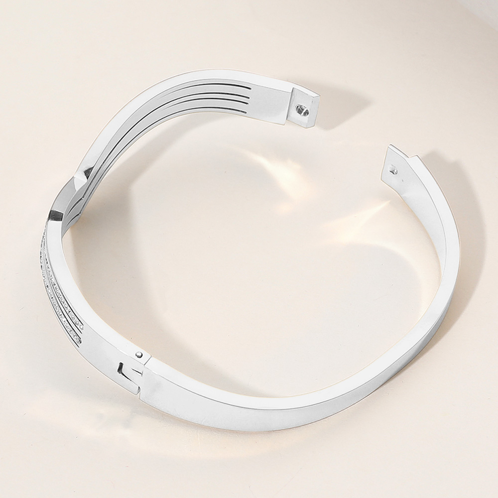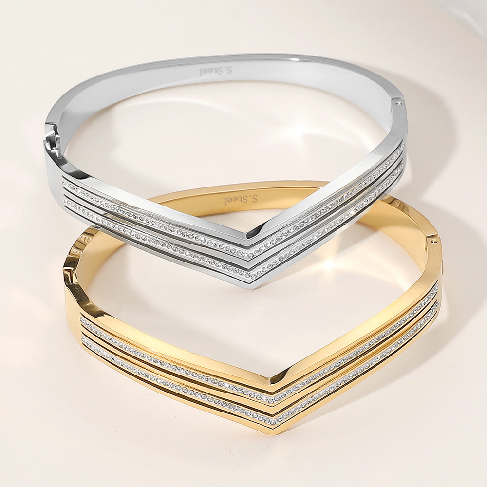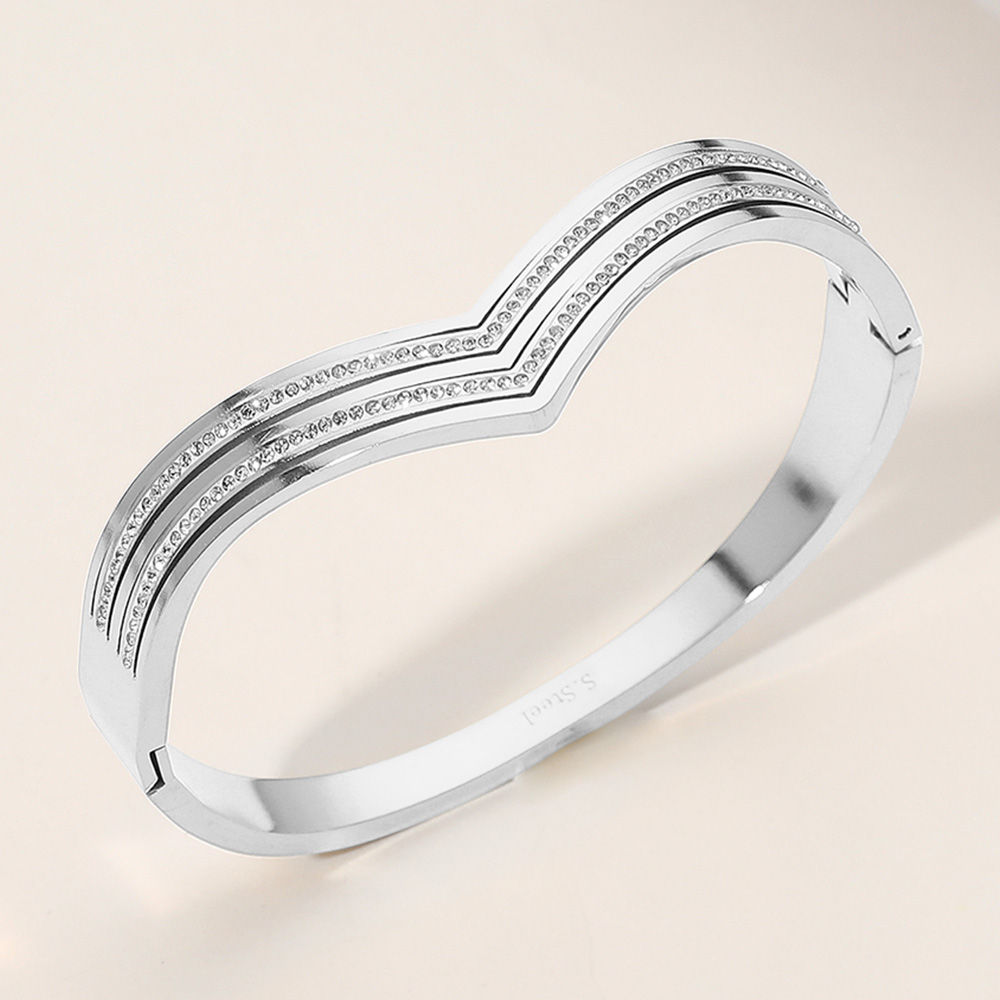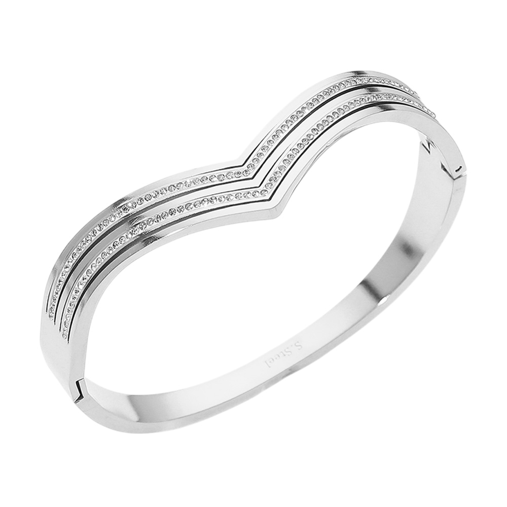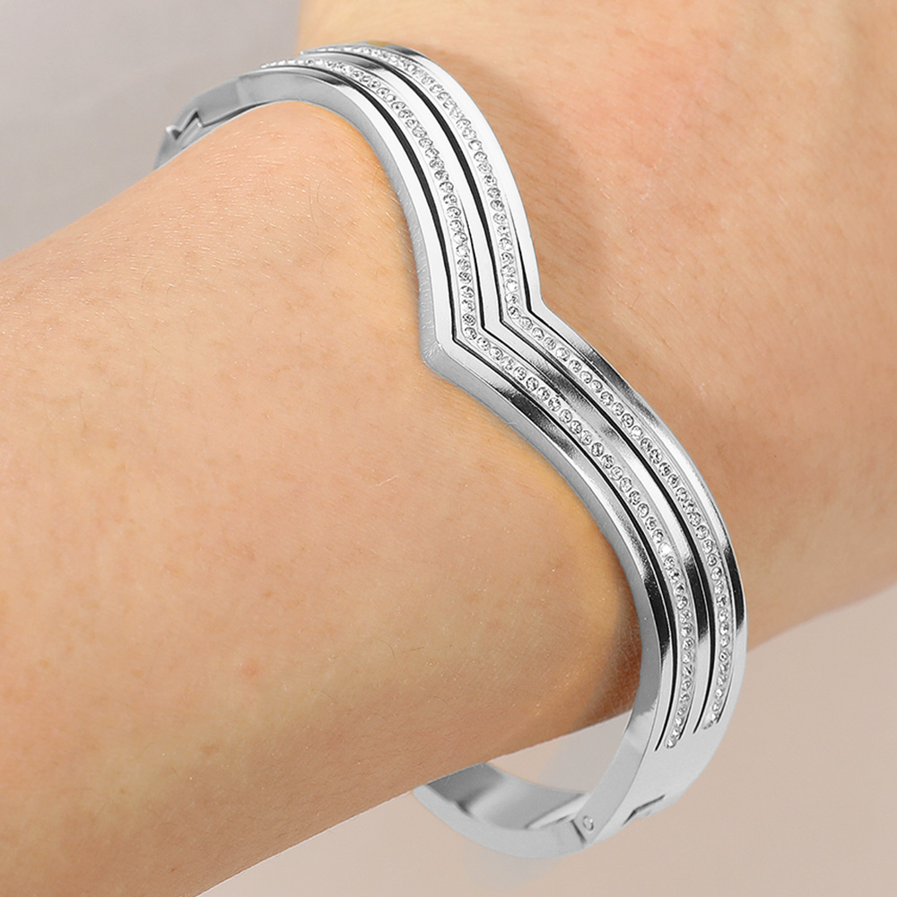 Stainless Steel Stone Paved Chevron Hinged Bangle Bracelet