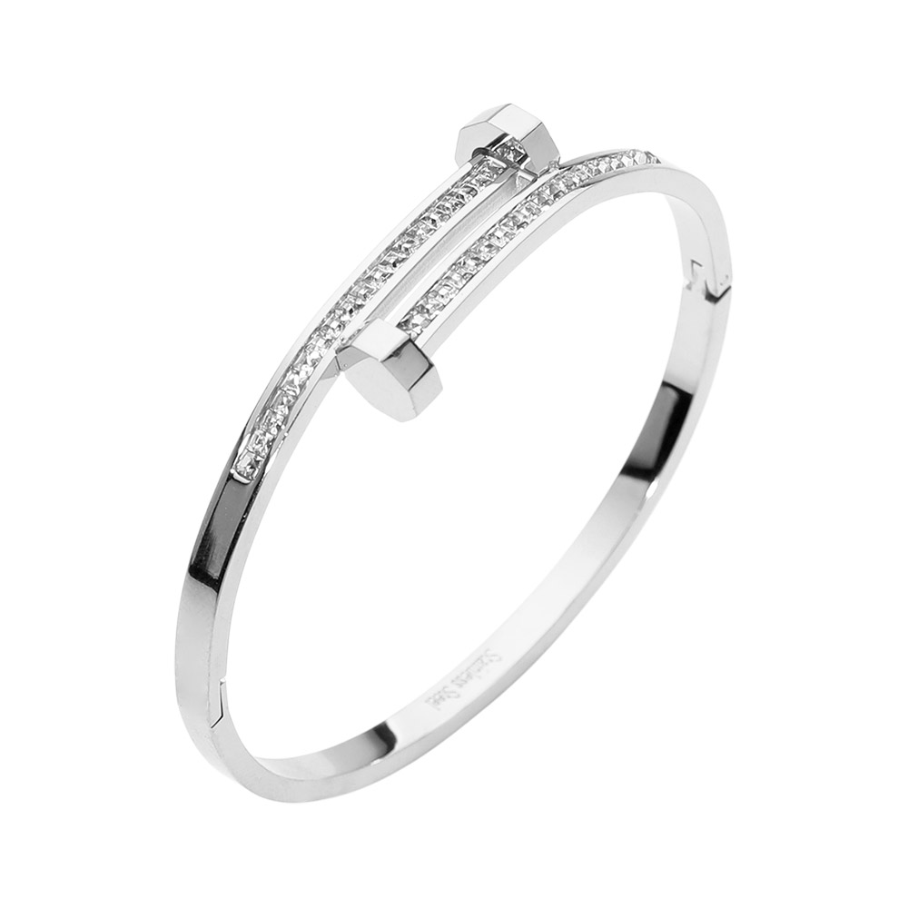 Stainless Steel CZ Stone Paved Nail Head Tip Hinged Bangle Bracelet Stainless Steel CZ Stone Paved Nail Head Tip Hinged Bangle Bracelet Stainless Steel CZ Stone Paved Nail Head Tip Hinged Bangle Bracelet