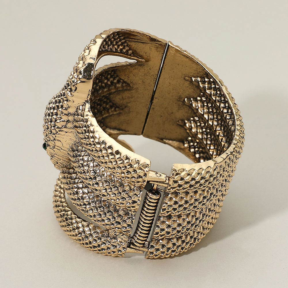 Textured Coiled Snake Wide Hinged Bracelet