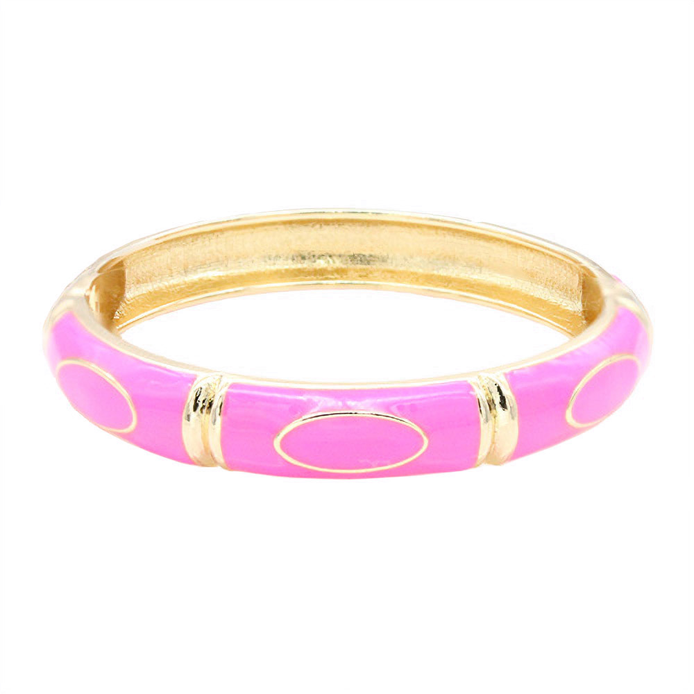 • Elegant enamel bangle bracelet featuring smooth oval accents and a polished hinged design. A timeless statement accessory that adds refined charm to any outfit. Perfect for formal, casual, or workwear styling with a sleek and sophisticated finish.