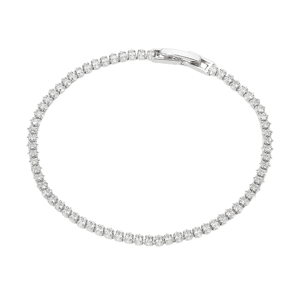 • This delicate crystal tennis bracelet embodies understated elegance with its fine line of sparkling stones. Perfect for both day and evening wear, it adds a refined shimmer to any ensemble. A timeless jewelry essential designed to complement every style with effortless sophistication.