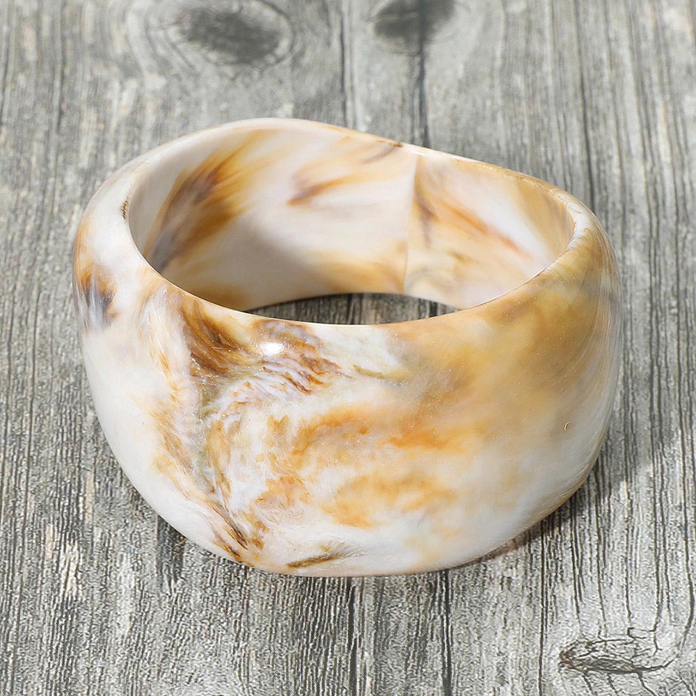 Details • Size : 2.1" H, 2.5" D • Add bold style to your accessories with this wide resin bangle, featuring a striking marbled swirl design. Perfect for making a statement, this versatile piece complements both casual and dressy outfits with artistic flair and contemporary appeal.