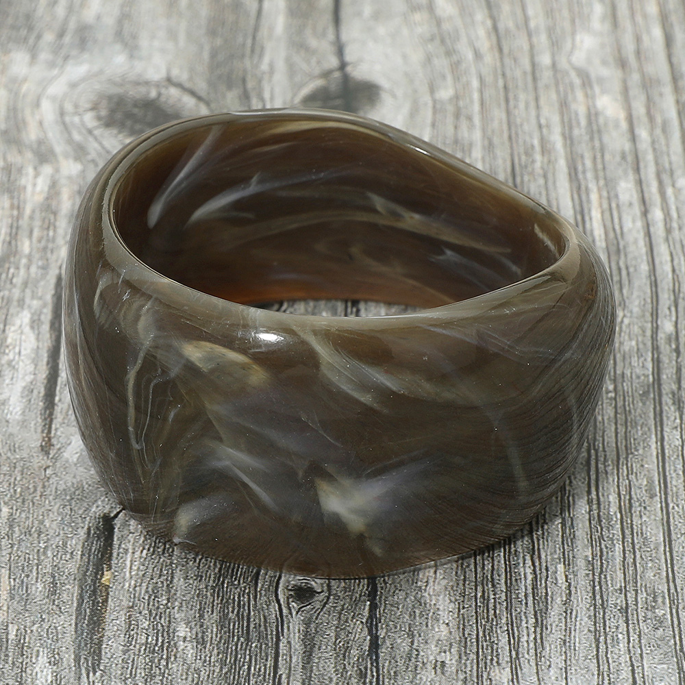Details • Size : 2.1" H, 2.5" D • Add bold style to your accessories with this wide resin bangle, featuring a striking marbled swirl design. Perfect for making a statement, this versatile piece complements both casual and dressy outfits with artistic flair and contemporary appeal.