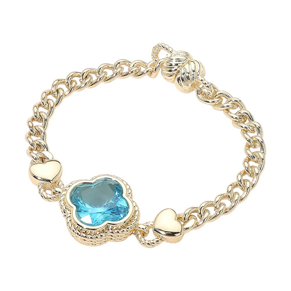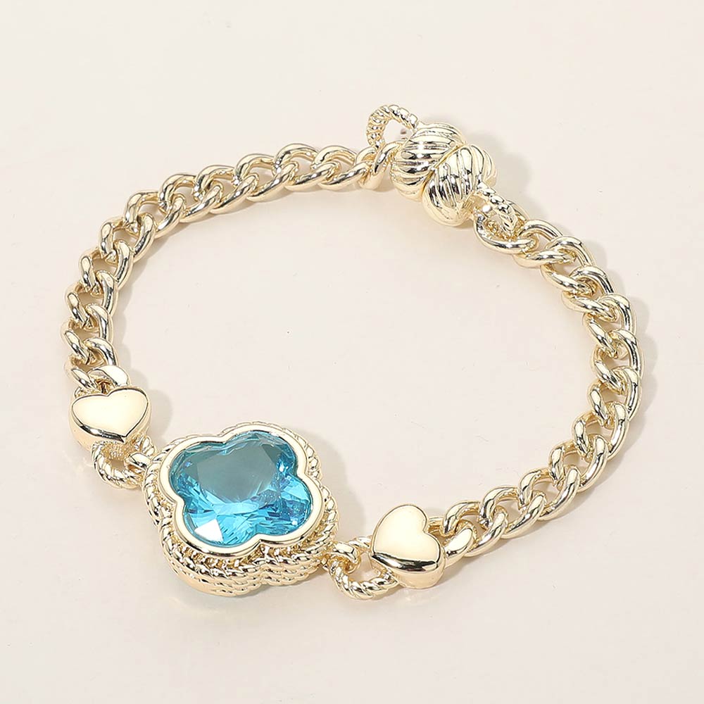 14K Gold Plated CZ Quatrefoil Stone Pointed Magnetic Bracelet