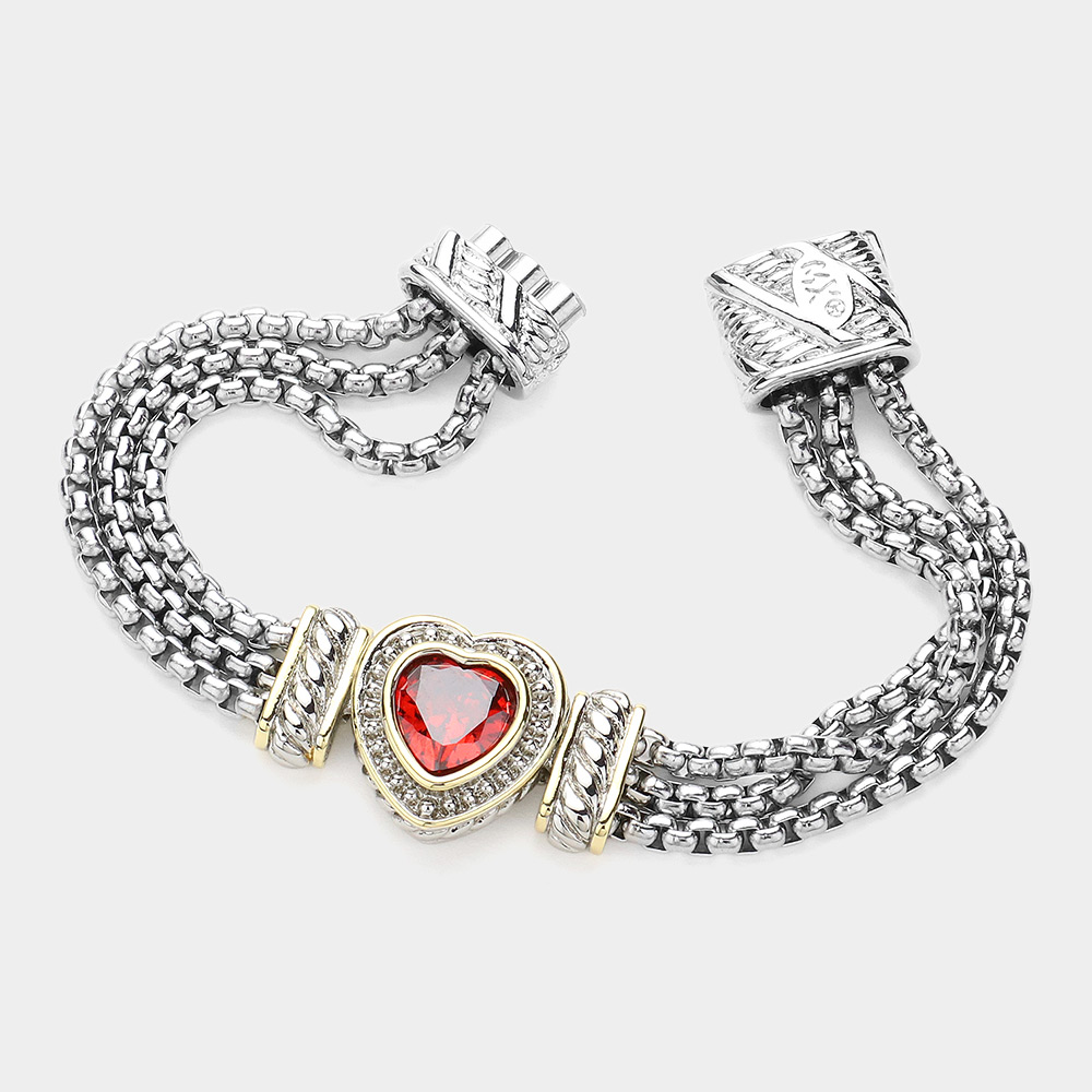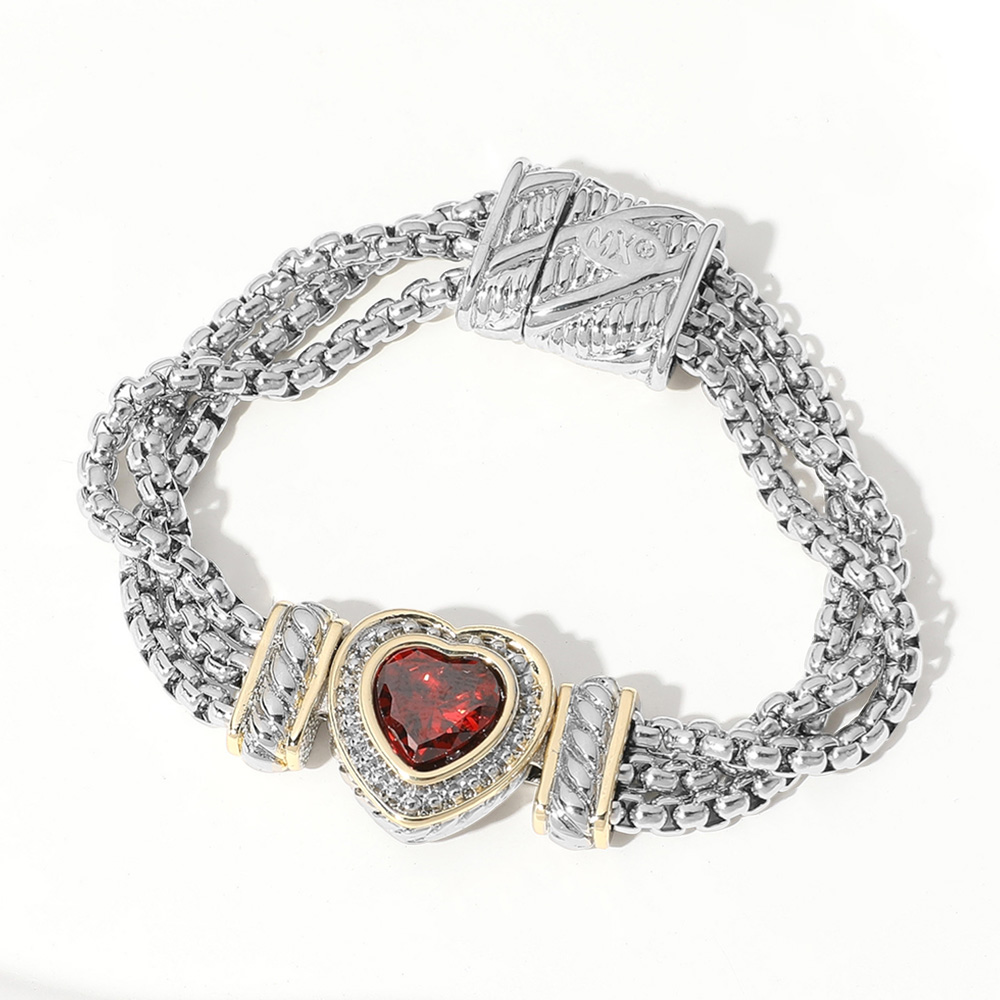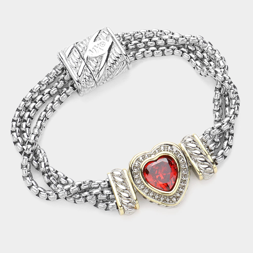 14K Gold Plated CZ Stone Paved Heart Pointed Magnetic Bracelet