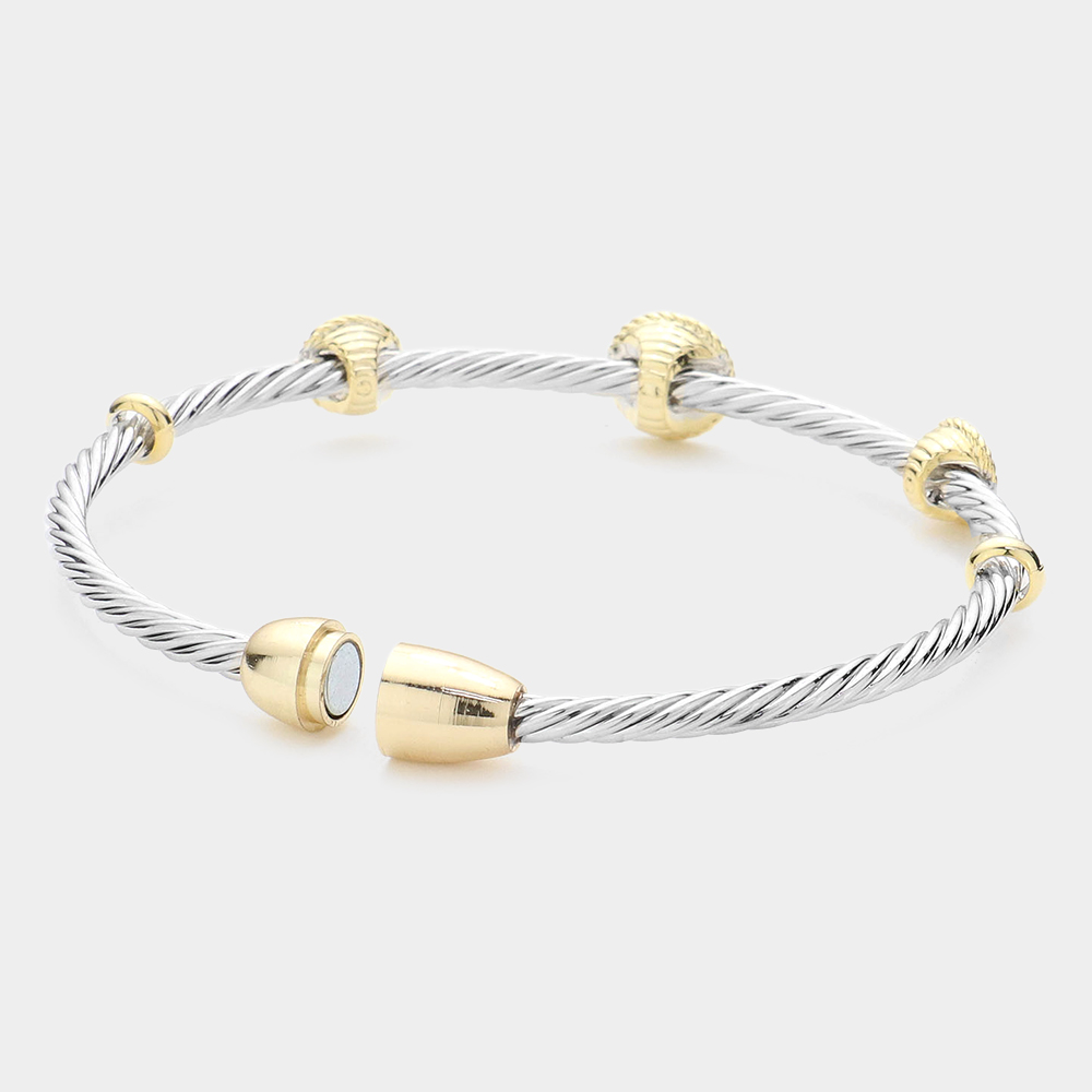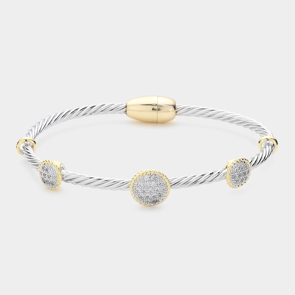 CZ Stone Paved Round Pendant Pointed Magnetic Bracelet