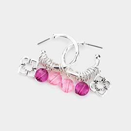 Stone Pointed Metal Cutout Flower Link Dropdown Earrings