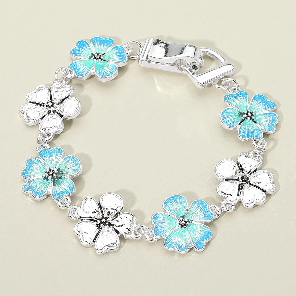 • Elegant floral charm bracelet featuring linked flower accents and a secure magnetic clasp. Designed with sculpted petal details and a polished finish, this bracelet adds a graceful touch to everyday outfits, gifting collections, and seasonal accessory assortments with effortless wear appeal.