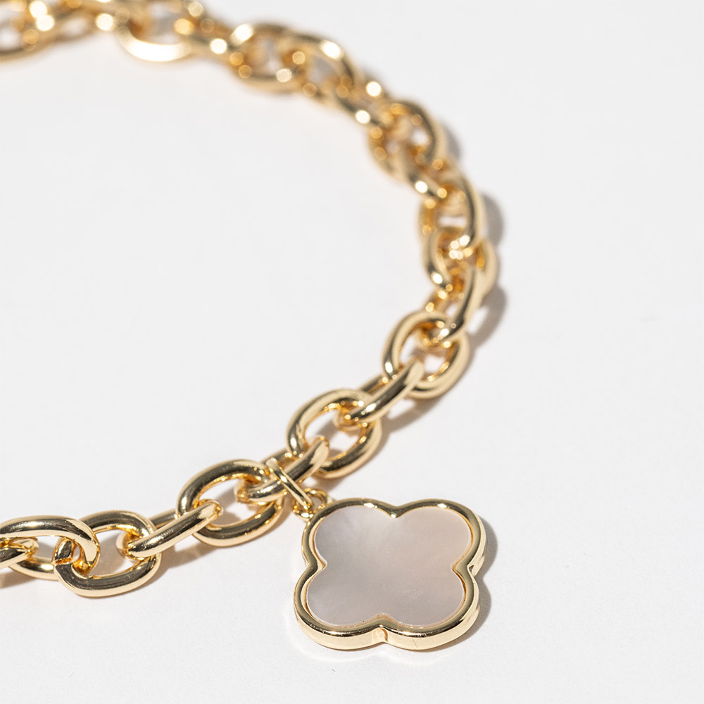 Gold Dipped Mother Of Pearl Quatrefoil Charm Bubble Chain Bracelet