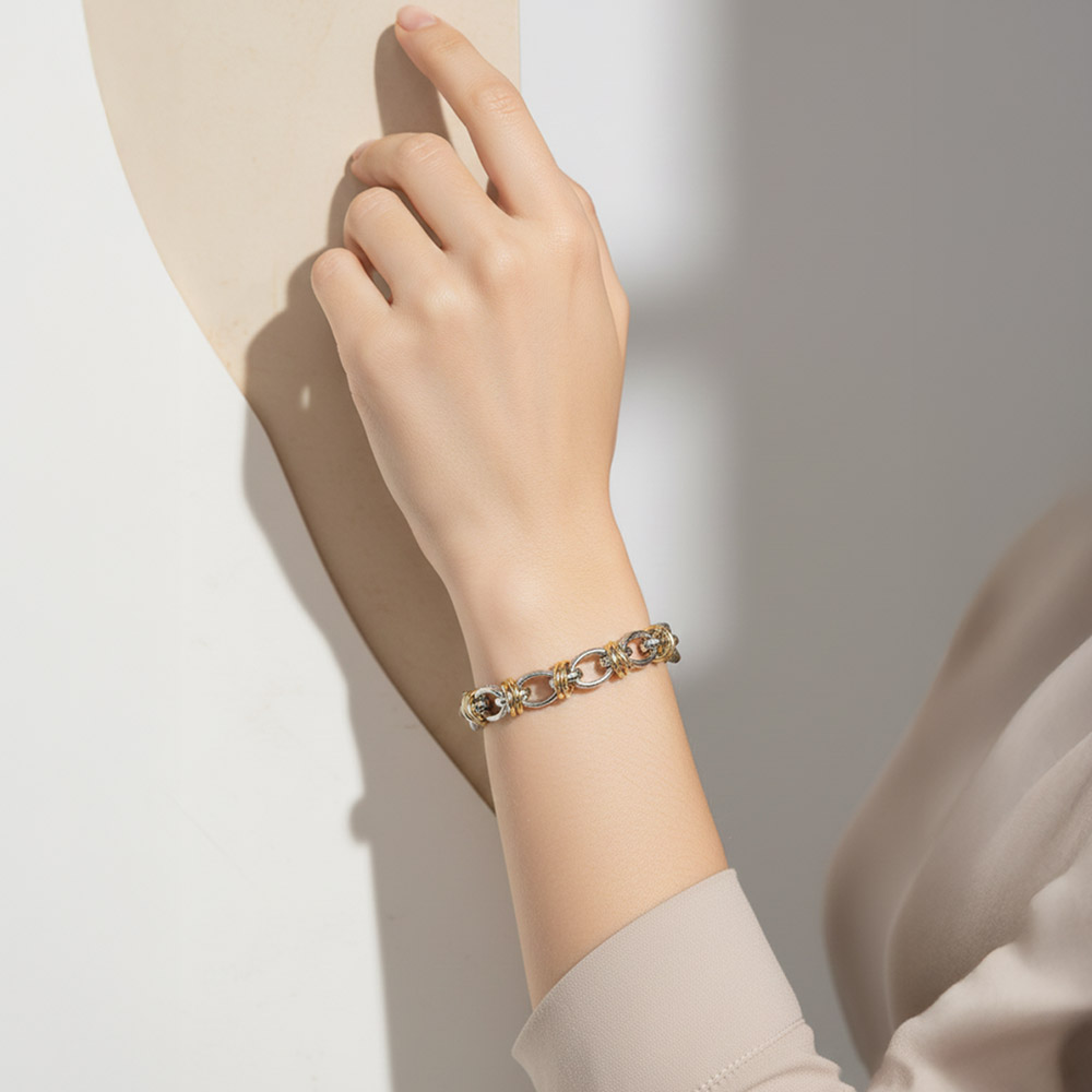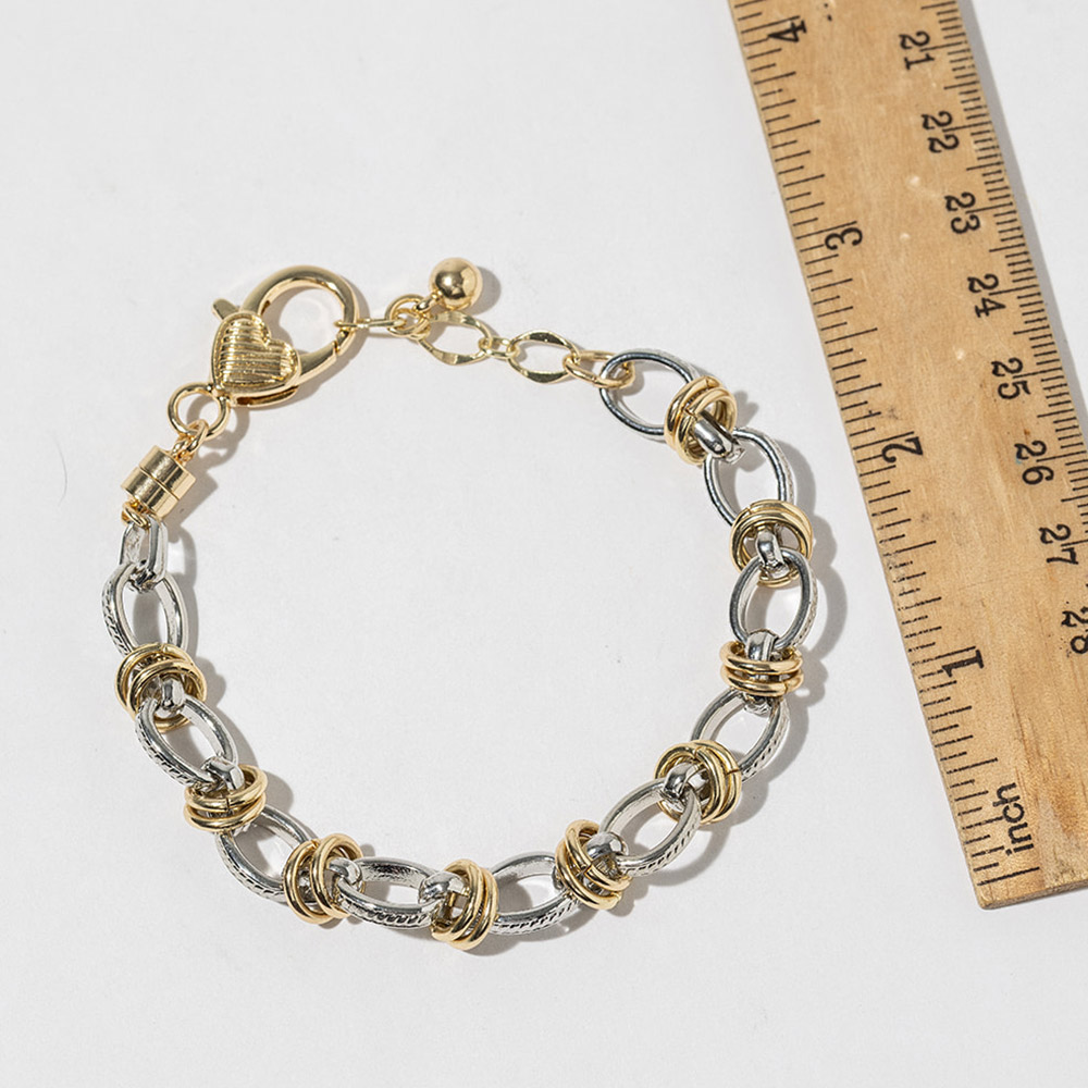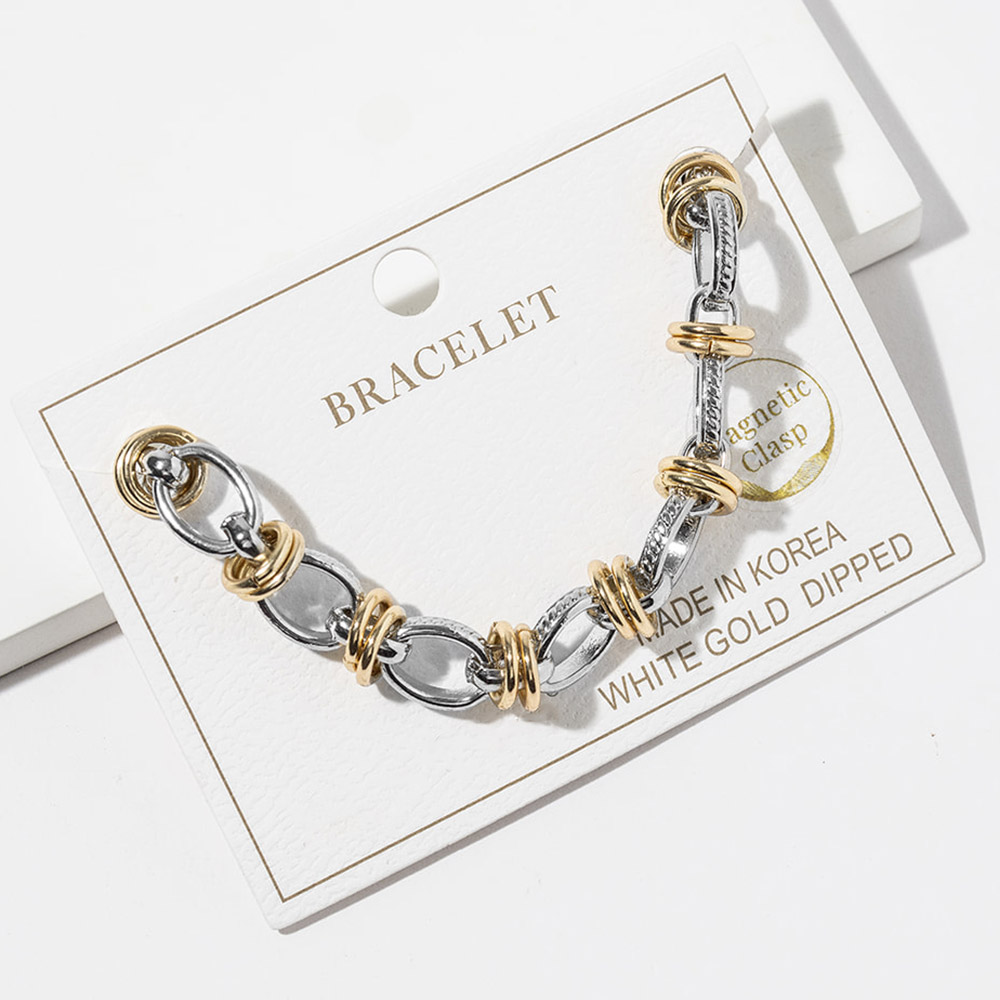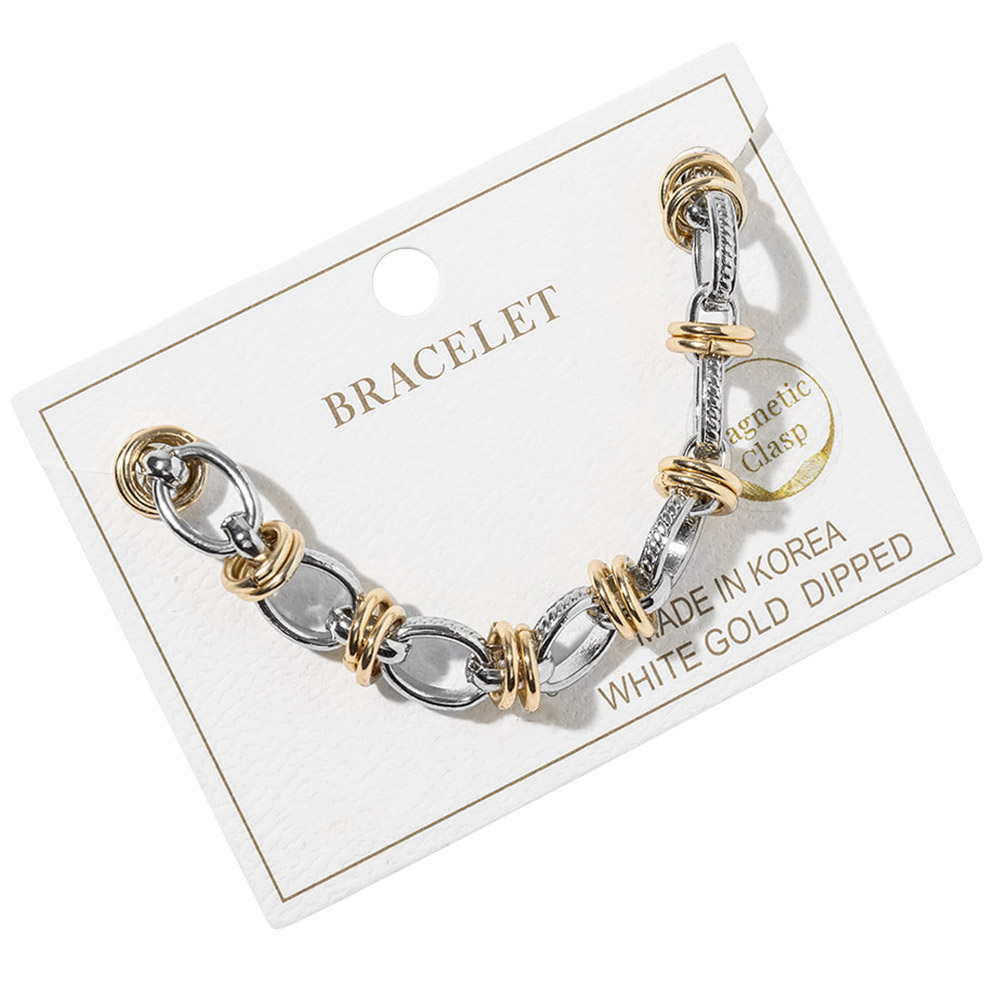 Details • Size : 0.3" H, 7.5" + 1" L • Magnetic Closure • Statement link bracelet featuring a secure magnetic clasp for effortless on and off wear. Designed with layered link details that add dimension and movement, making it perfect for everyday styling or stacking with other bracelets. A versatile accessory ideal for boutiques, gift assortments, and trend-focused jewelry collections. • Lead and Nickel Compliant • Made In Korea • Gold Dipped